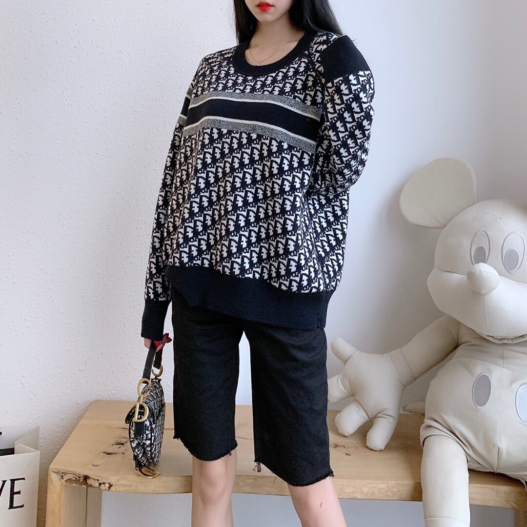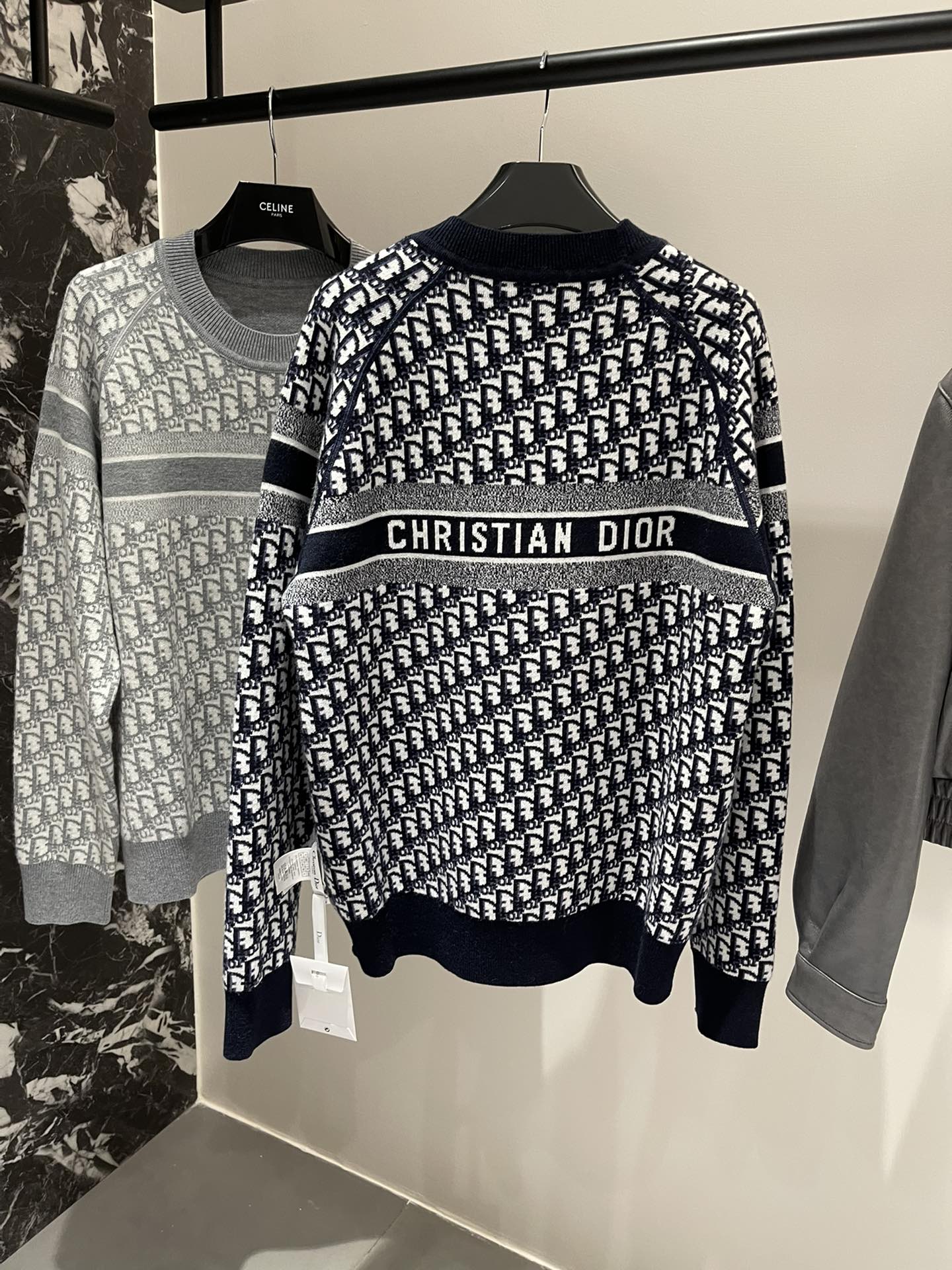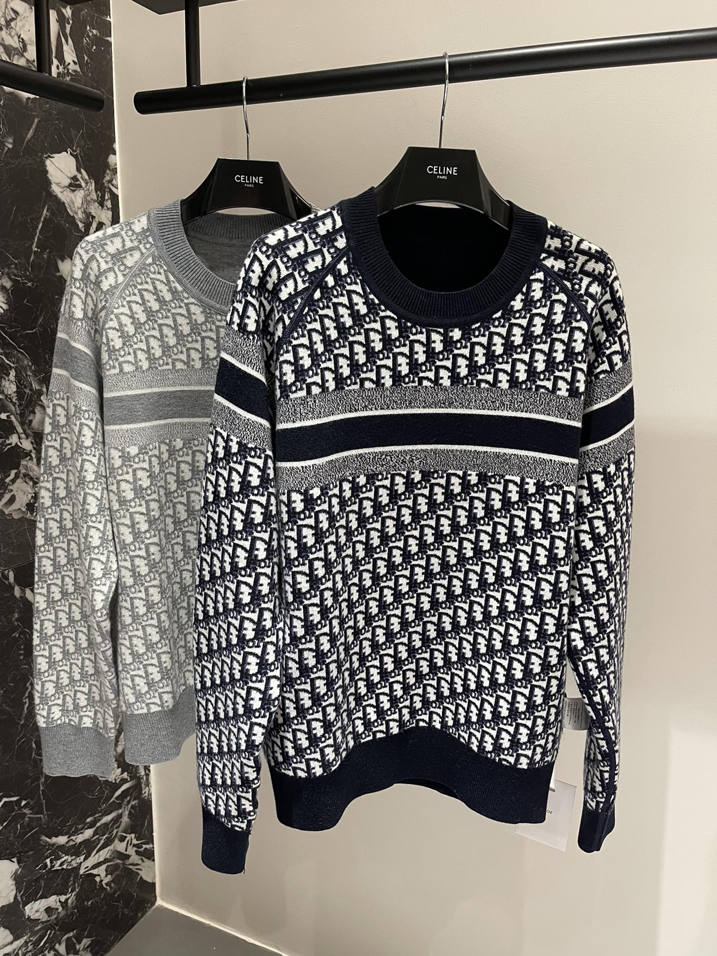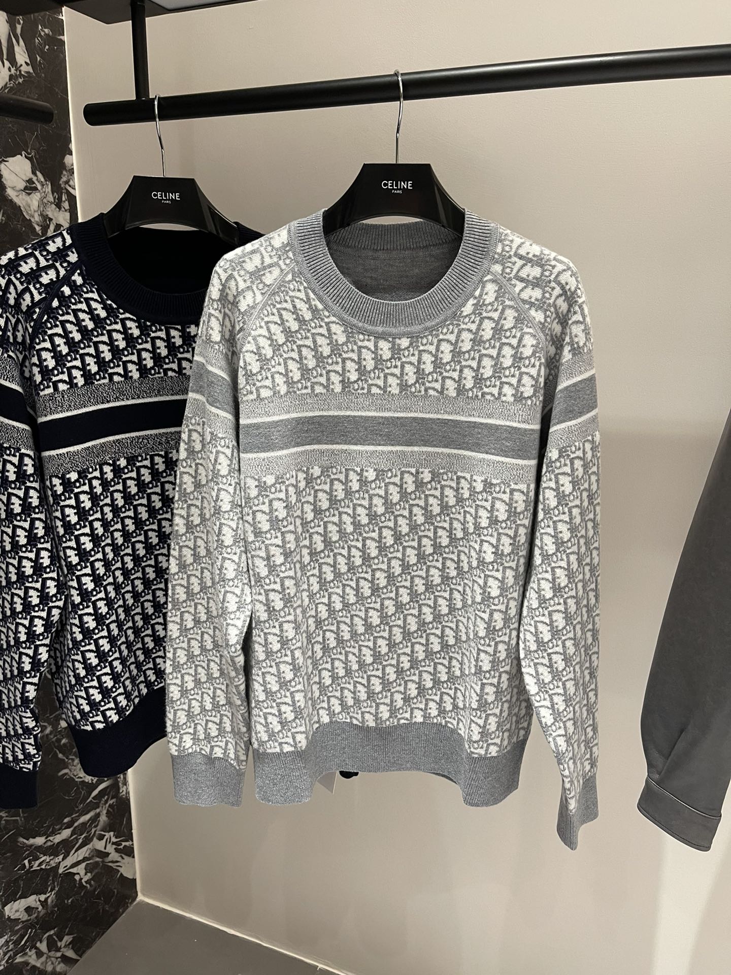 ??139. 2025 Winter Dior Navy Blue and Grey Monogram Reversible Cashmere Sweater??