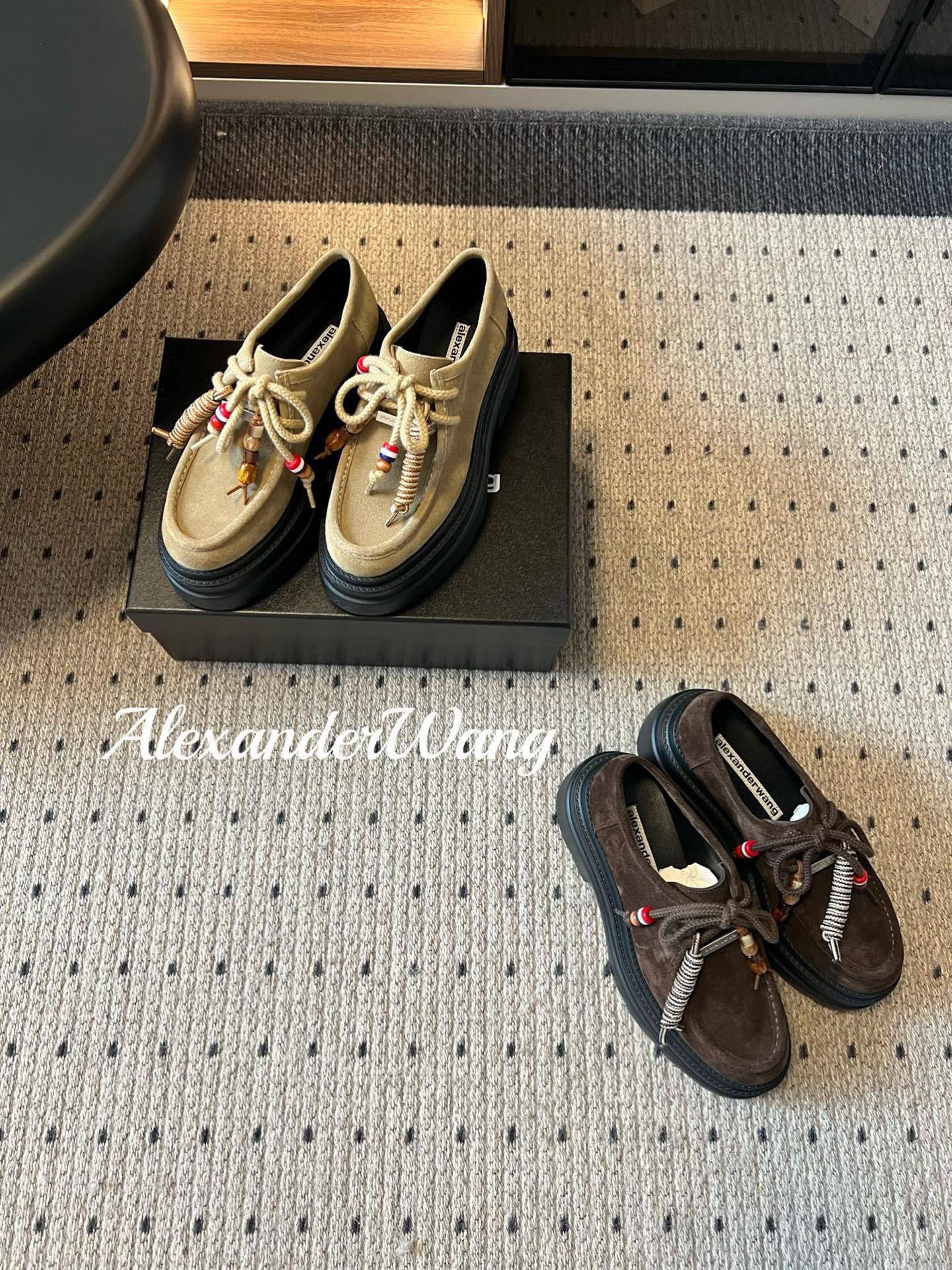 op quality Alexander Wan* aw carter Alexander Wang platform loafersJennie, this pair of platform loafers by Wang is amazing. The same style comes from Alexander Wang, and Hailey Bieber has the same pair! This “stock-trading magic shoe” is here.Compared with the previous old models and those from your store, the new model makes you look taller and slimmer. In addition to the classic black, there is also burgundy, both of which are low-key and versatile colors. The shiny leather upper is paired with the iconic brand’s metal logo, and the 5cm thick sole design easily gives you long legs!Upper: cow suedeLining: sheepskinOutsole: foam outsoleHeel height: 5cmSize: 35-40 (Size 40 is custom-made and non-refundable/non-exchangeable)