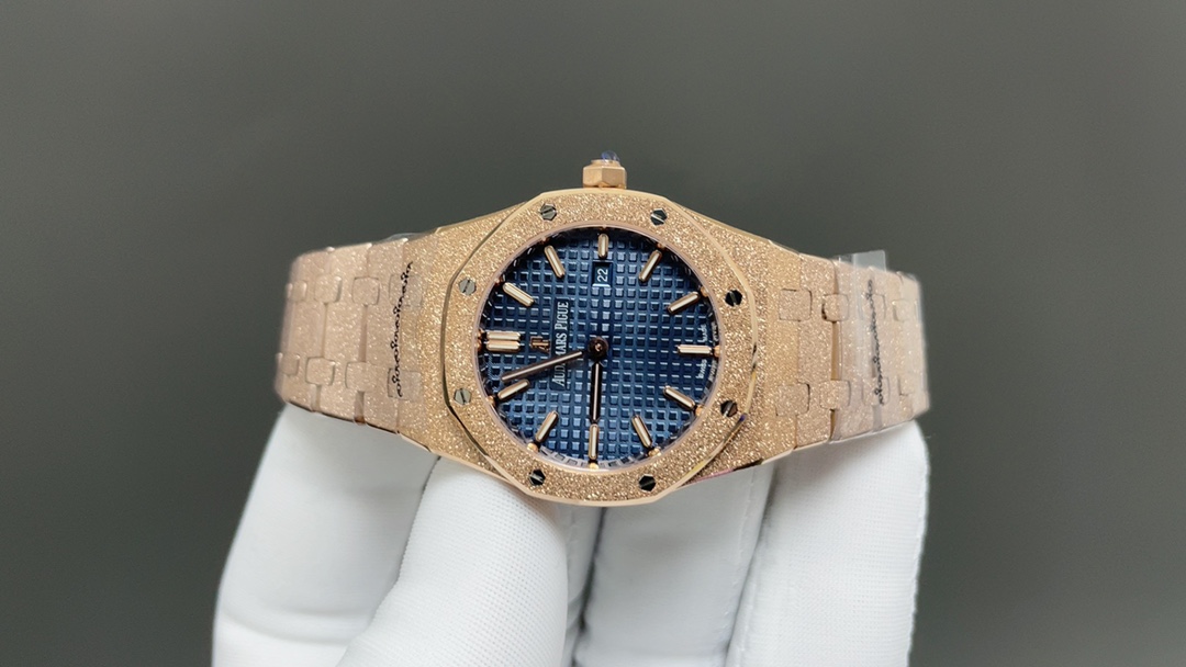 Frosted Gold 33mm Royal Oak 67651OR Ladies Quartz Watch
