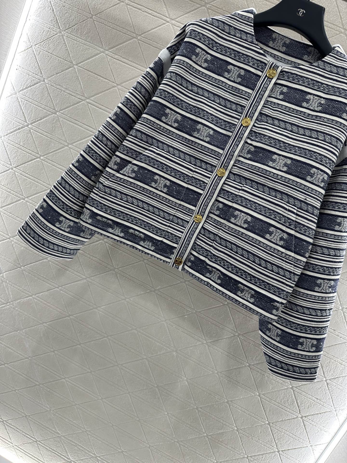 Customized YB imported cotton and wool material, containing 70% wool, with superior texture and excellent appearance. The woven woolen fabric creates a model of noble lady style. Front placket with a single row of heavy-duty engraved round buttons plus exquisite light blue stripe interwoven texture. The Arc de Triomphe logo is interspersed with irregular threads, which is lively and jumping yet elegant. Diagonally inserted exquisite small pockets highlight the brand’s taste and enrich the design’s sense of hierarchy. A must-have for fashionistas. ??Different from market versions. YB has no lining inside, with composite fabric, and visible fabric texture. Customized fabrics and accessories, please recognize the version. High version. ??????