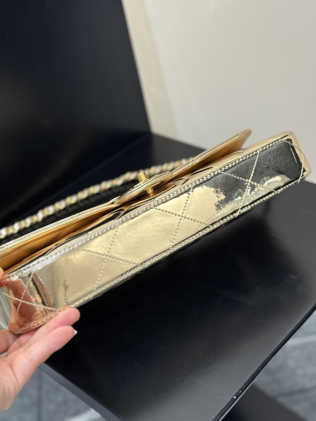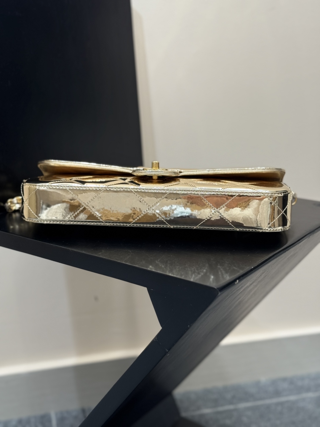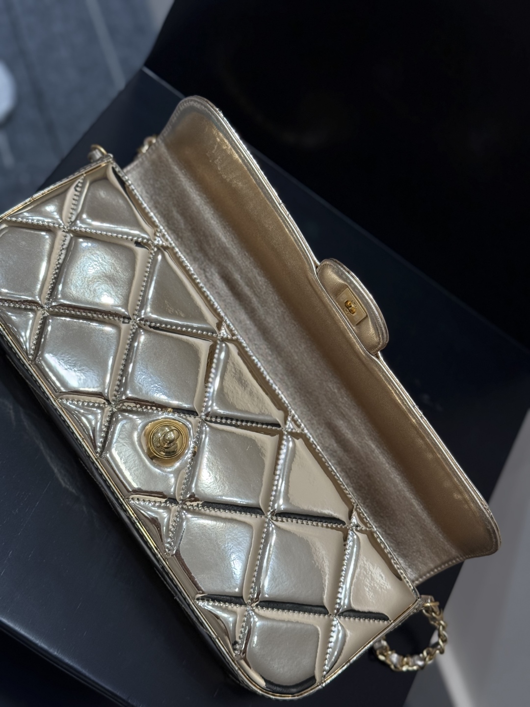 Be the first to review “Chanel 25k gold patent leather handle flap bag” Cancel reply