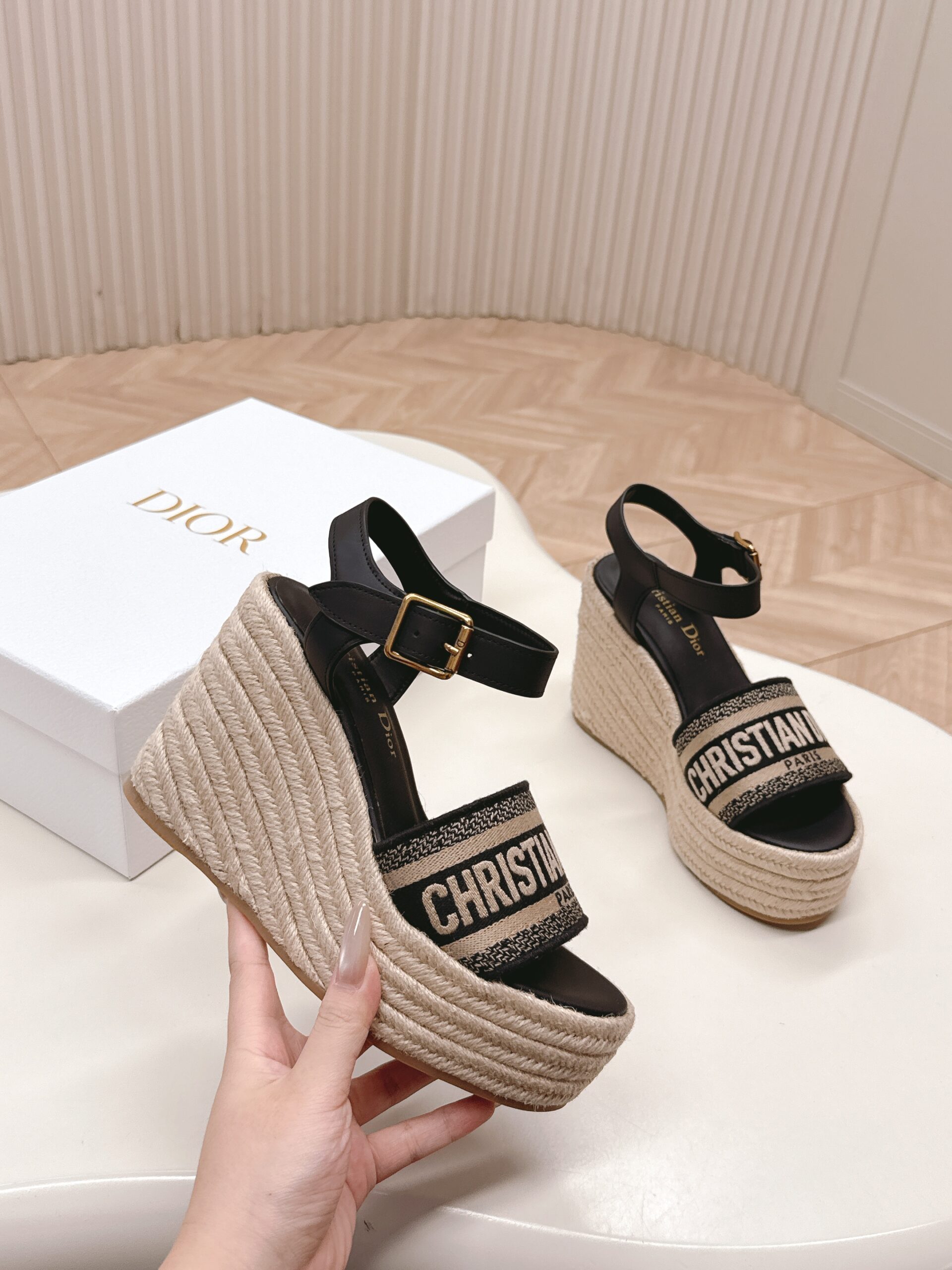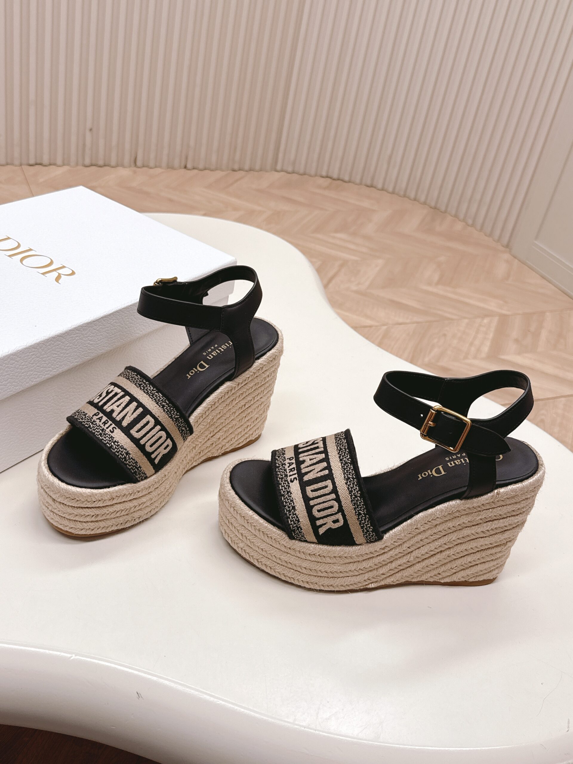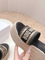 Dior IVIETADWAY Platform Wedge Sandals – CD letter logo 3D embroidered platform round-toe open-toe slippers. Developed based on the original version, it is a top-tier version on the market, with a soft and delicate foot feel and extremely high comfort.