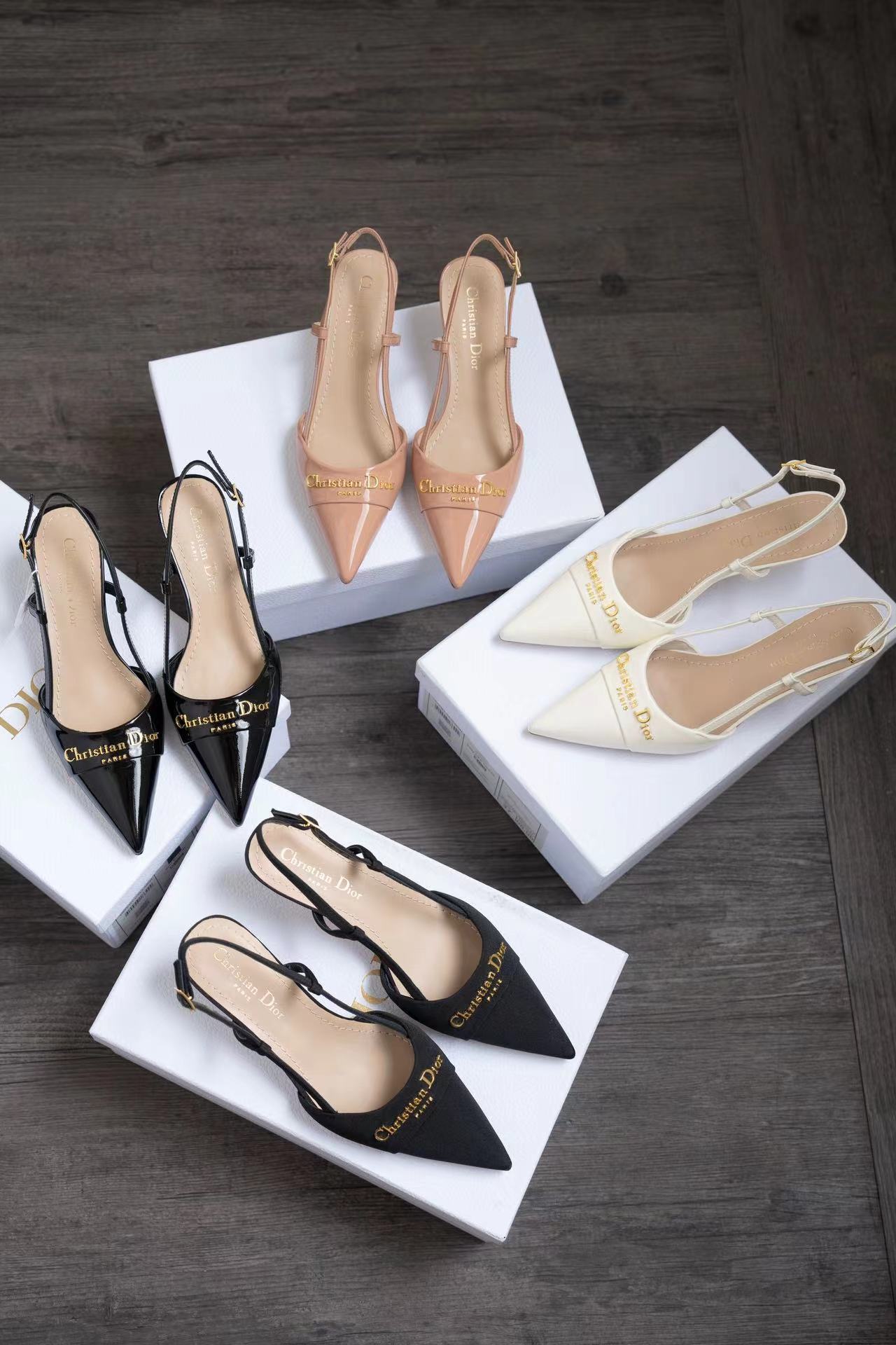 Be the first to review “Dior Pointed-Toe Letter Buckle Slingback High-Heeled Shoes”