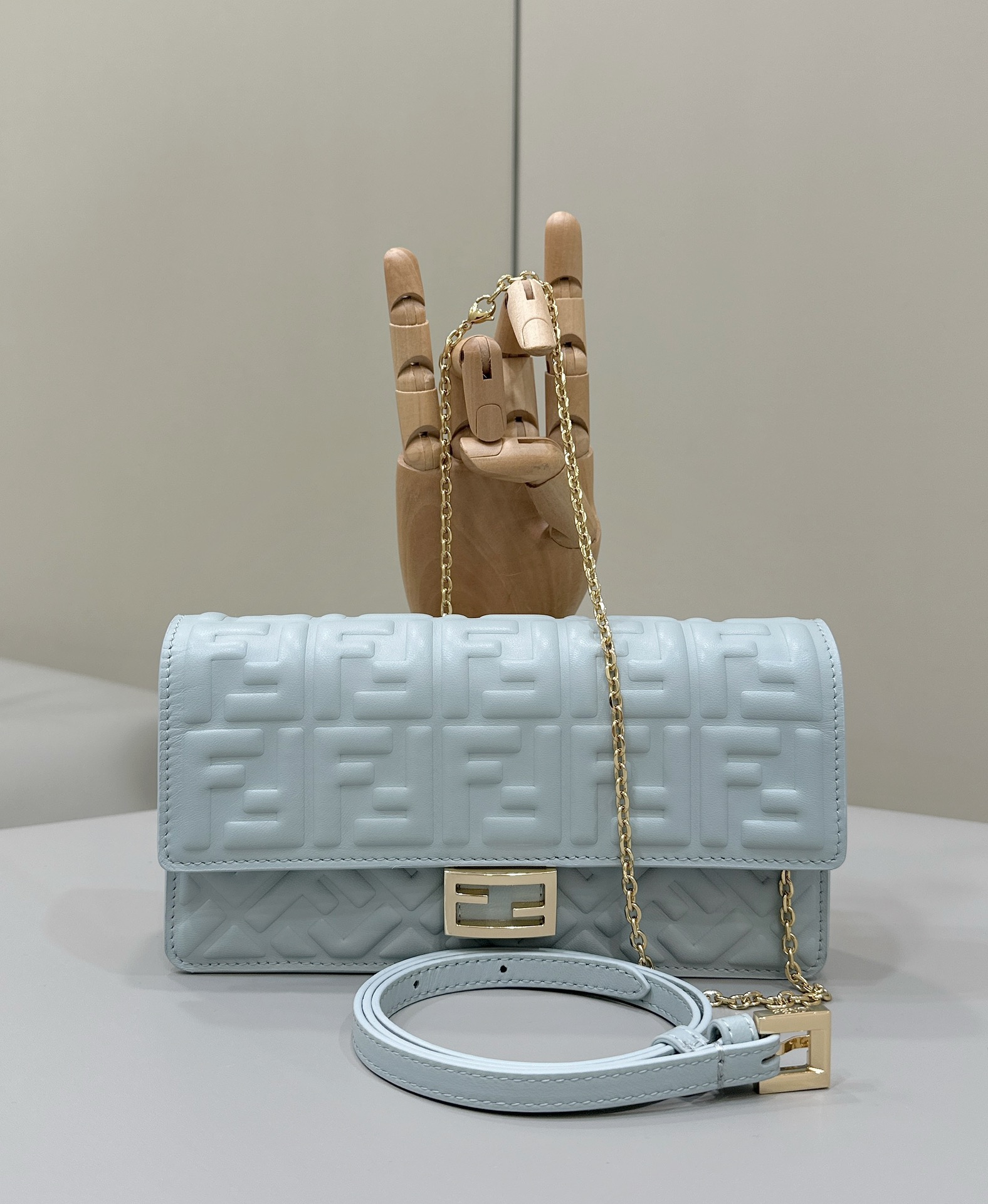 Comes with a detachable chain strap and a zip closure, featuring the signature FF logo on the zipper pull.