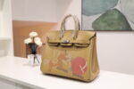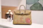 Hermès bag in Biscuit Swift leather, featuring a horse motif with graffiti painting design, silver hardware.