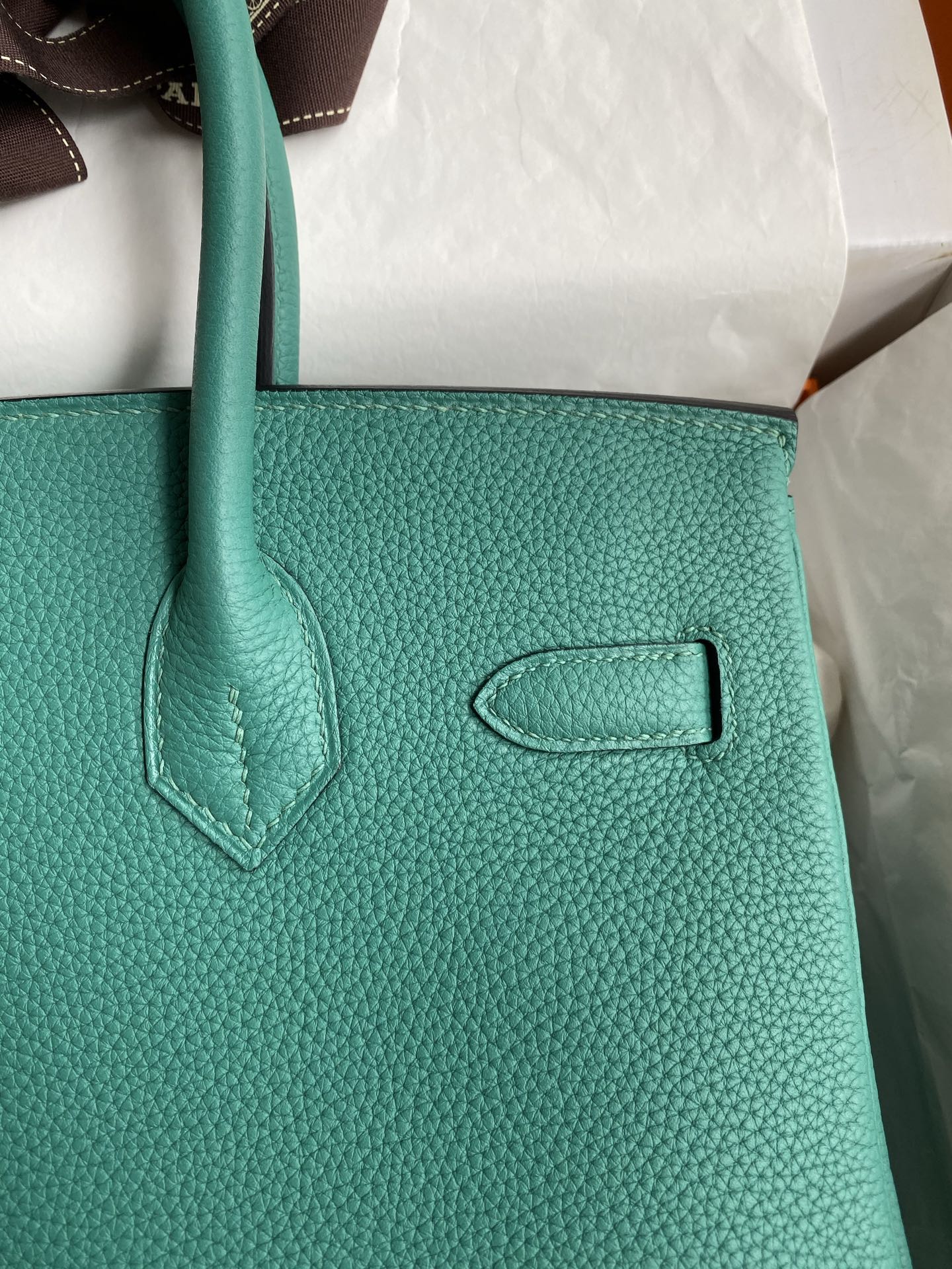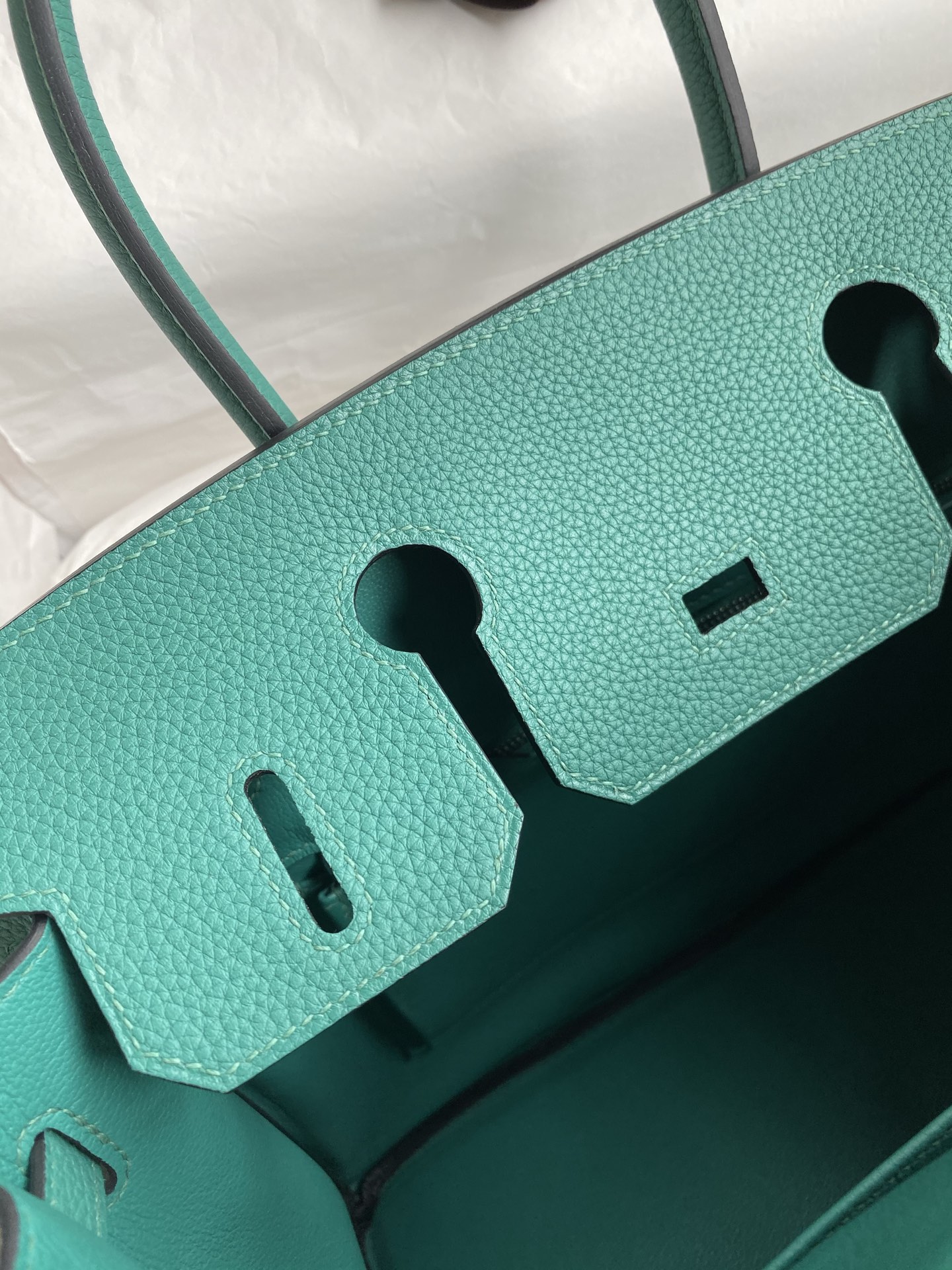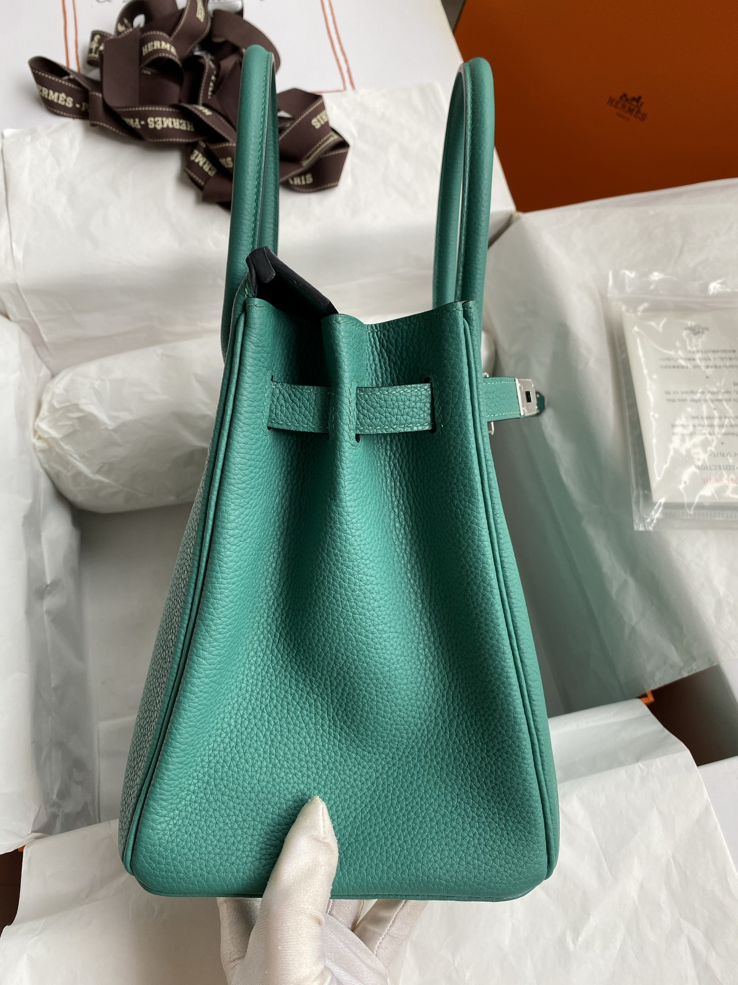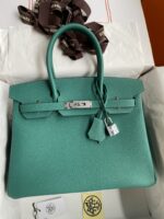 Hermès Birkin 30cm, made of imported Togo calfskin, peacock blue color, with silver hardware.