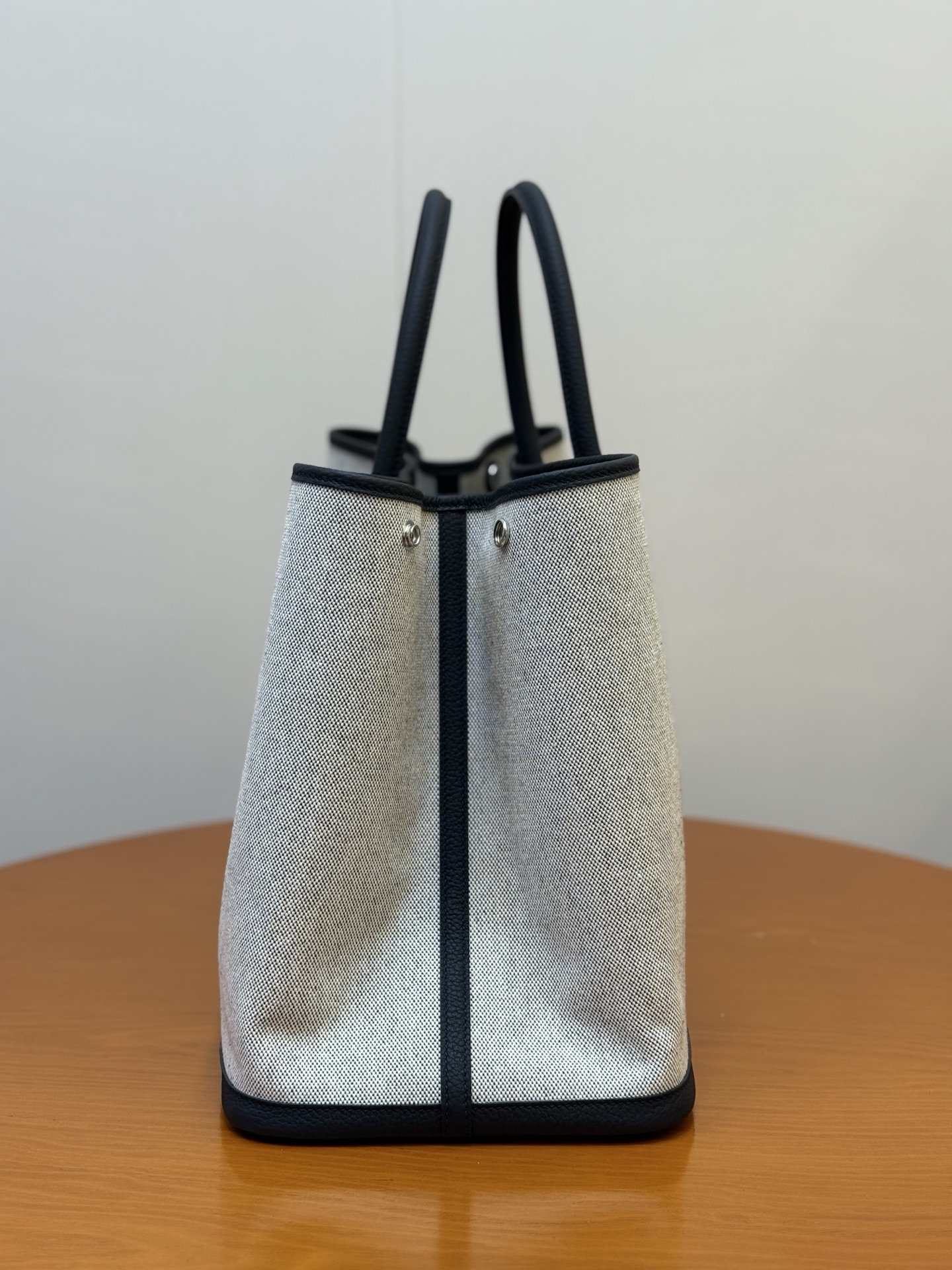Canvas combined with Negonda calf leather, featuring an inner pocket and saddle-stud snap closure. Size: 49 x 36 x 25.3 cm. Subtle yet high-end, suitable for commuting and travel 🖤.