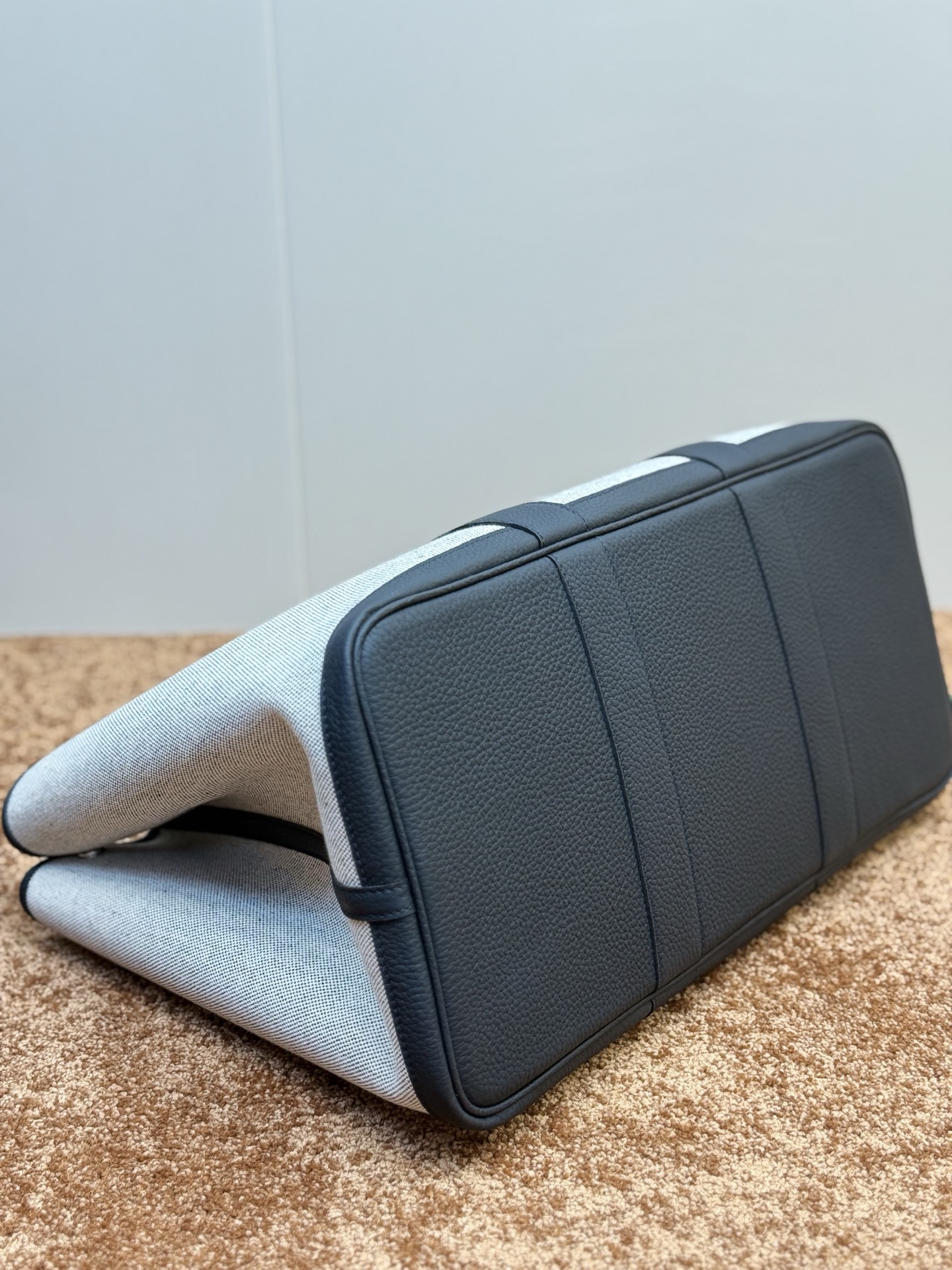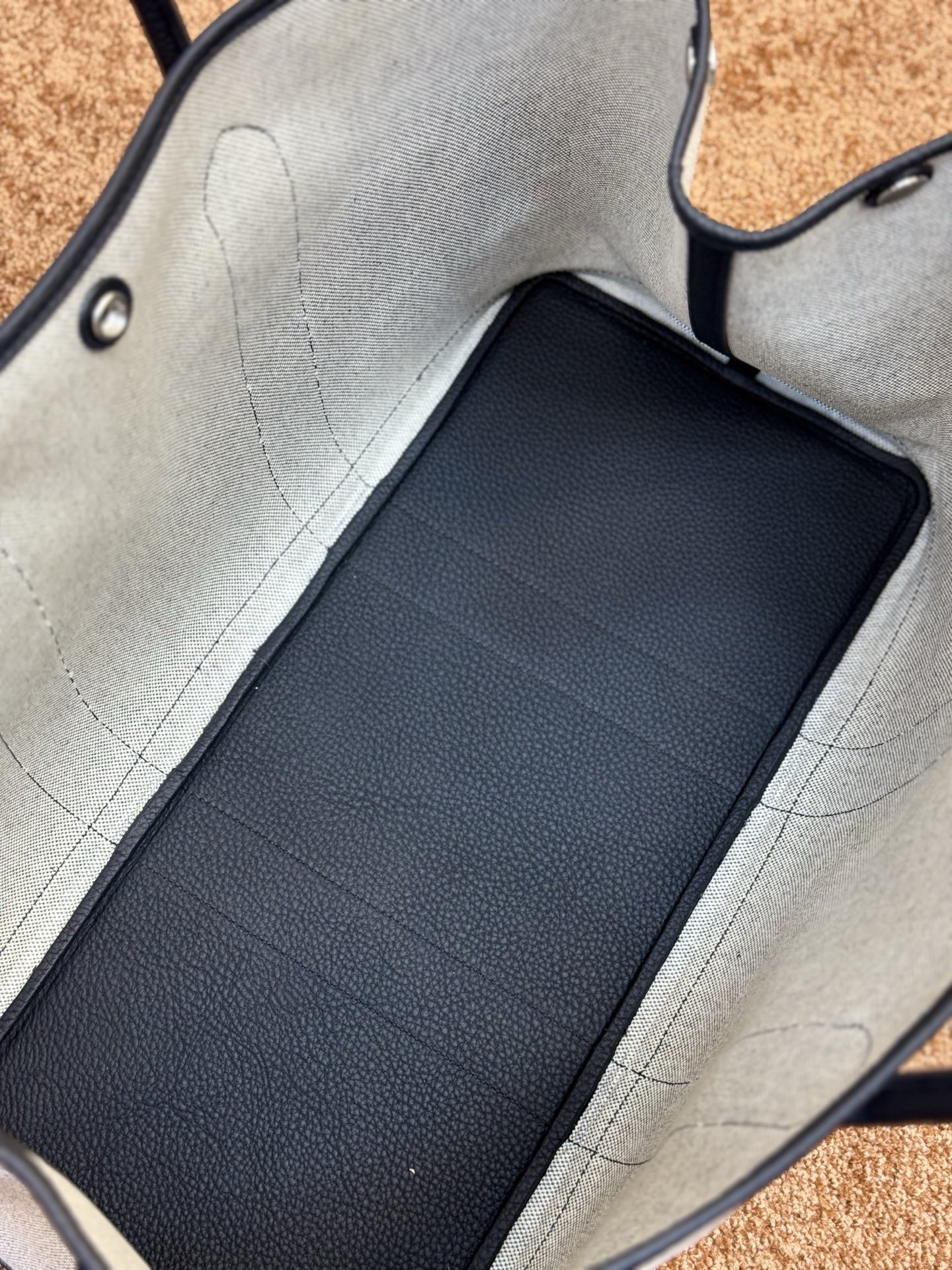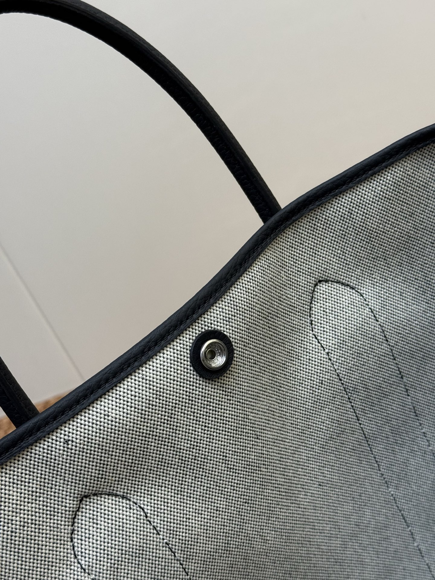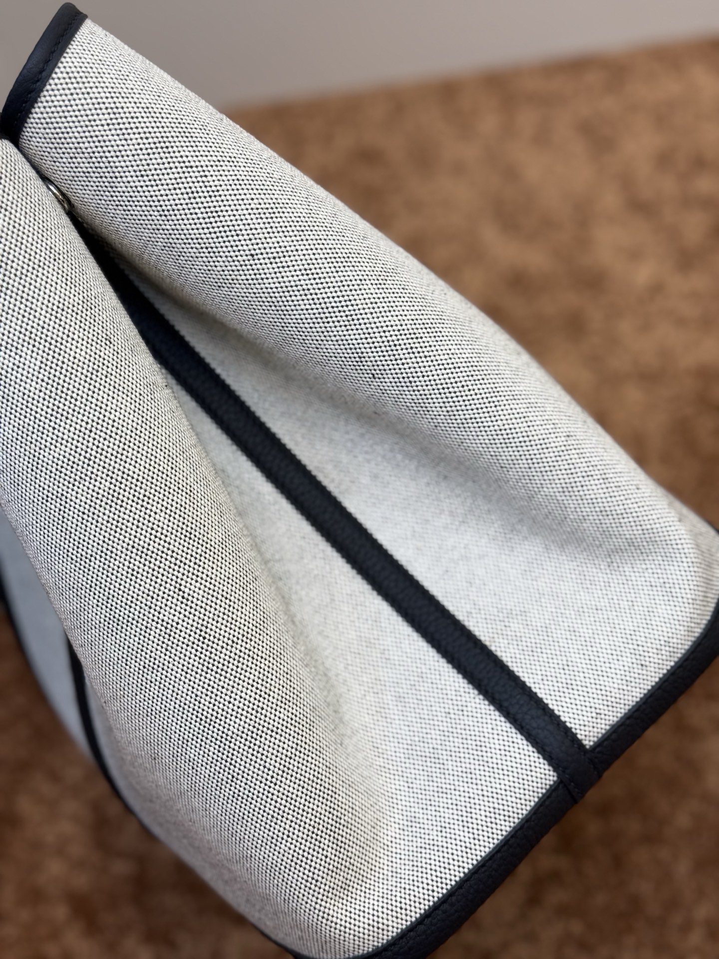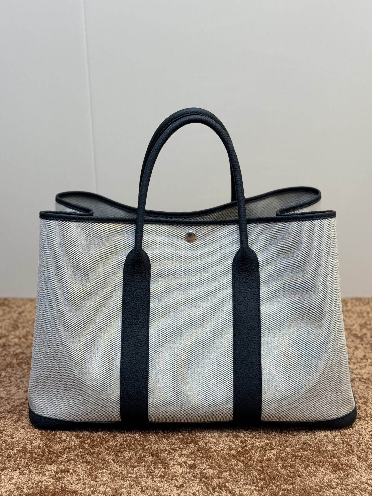 Canvas combined with Negonda calf leather, featuring an inner pocket and saddle-stud snap closure. Size: 49 x 36 x 25.3 cm. Subtle yet high-end, suitable for commuting and travel 🖤.