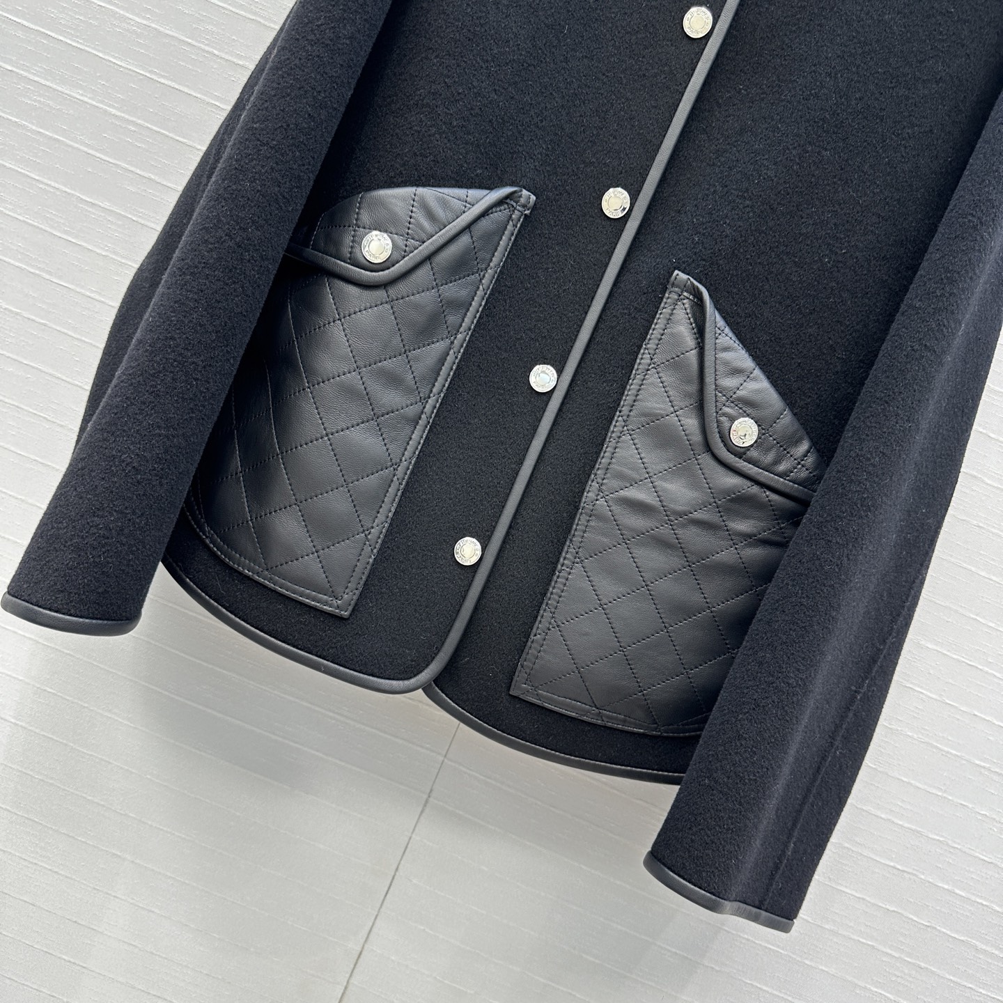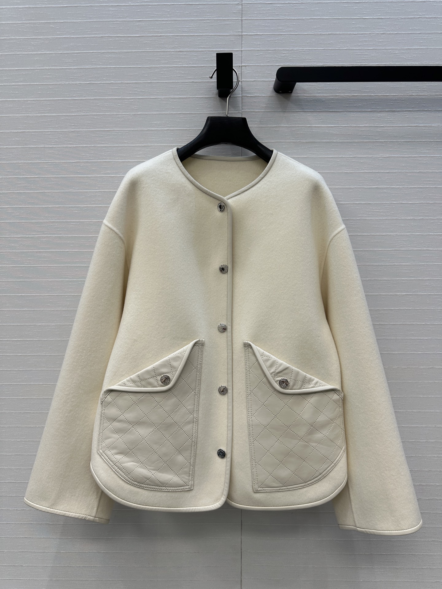 Exclusive First Release H Maison’s new handcrafted wool jacket! 100% lambskin with diamond pattern quilting, flip buttons, and large pocket decorations, featuring lambskin splicing and edge wrapping ???? Imported 90% wool and 10% cashmere fabric, with a delicate, soft, and stylish texture. Simple, fashionable and high-end! Casual, elegant, relaxed and handsome! Three-dimensional tailoring with a loose fit, which is absolutely slimming when worn! The workmanship and quality can be seen in the details. Two colors, sizes S-L. Big orders are welcome. Size 38, drop shoulders, bust 114, length 64. Details Delete Take down Refresh Pin Edit Copy