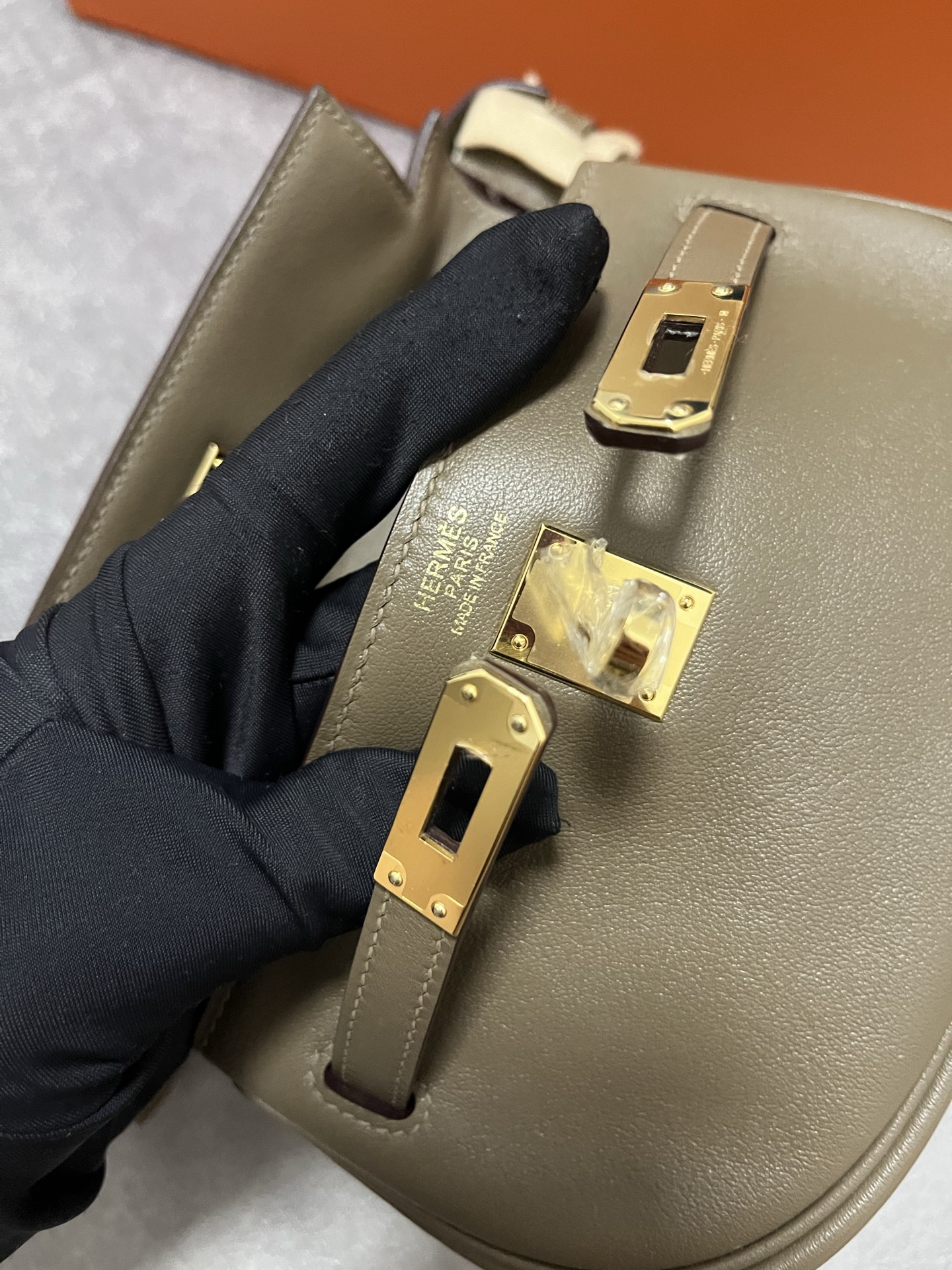 Kelly Moove D0, Weimaraner beige, gold hardware, original Swift leather, fully handcrafted.