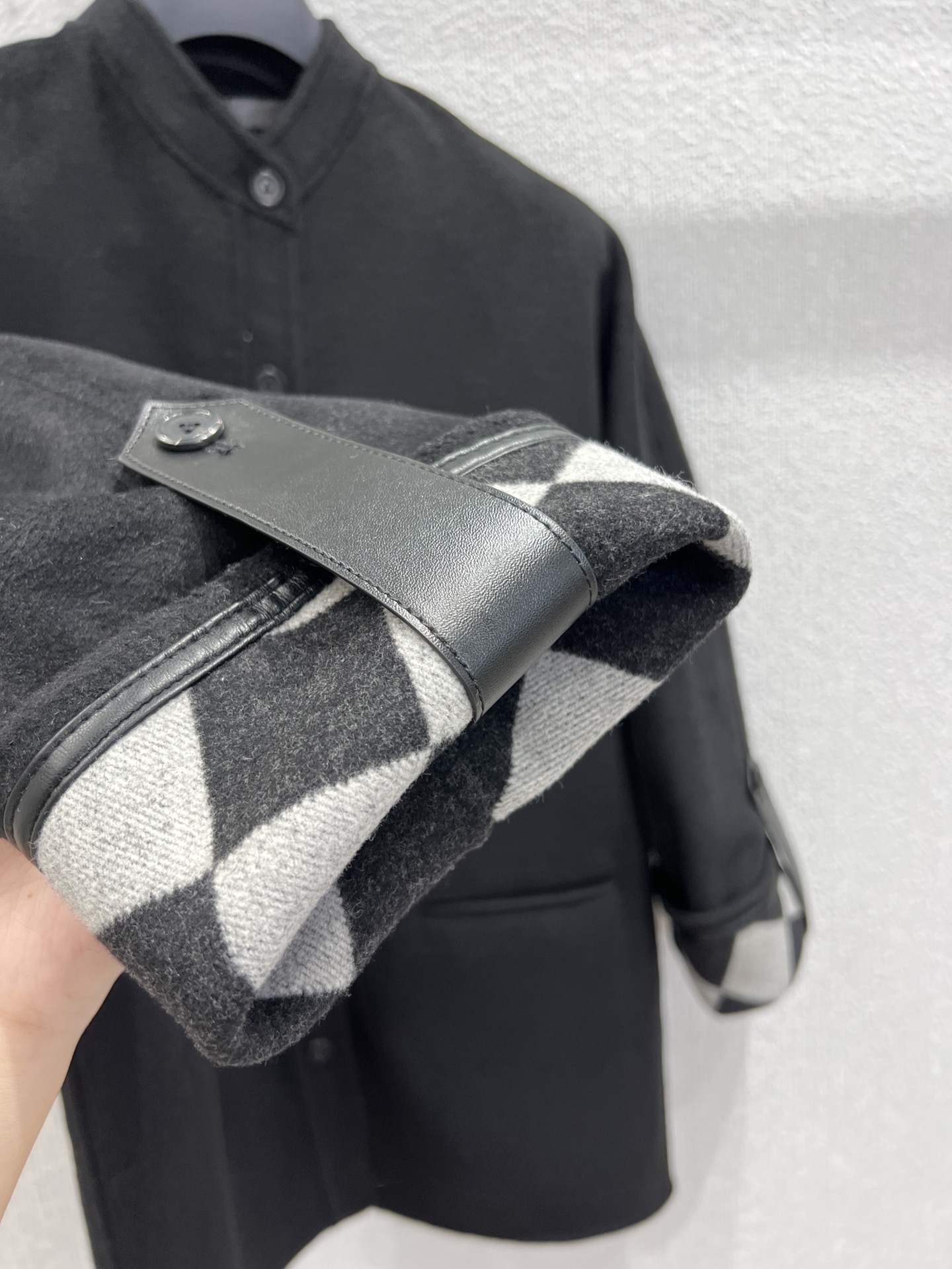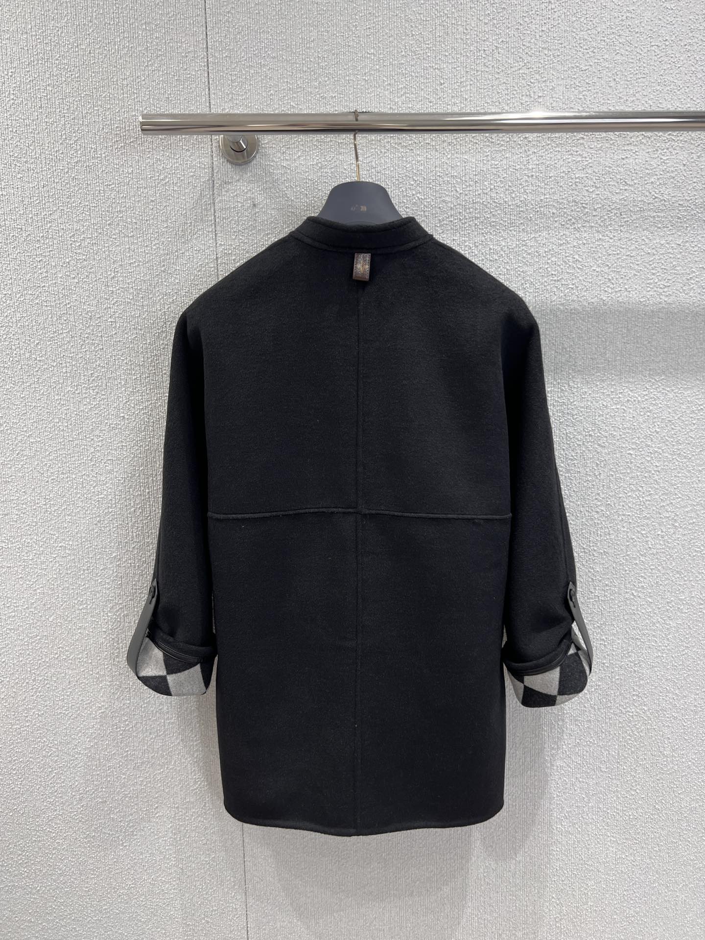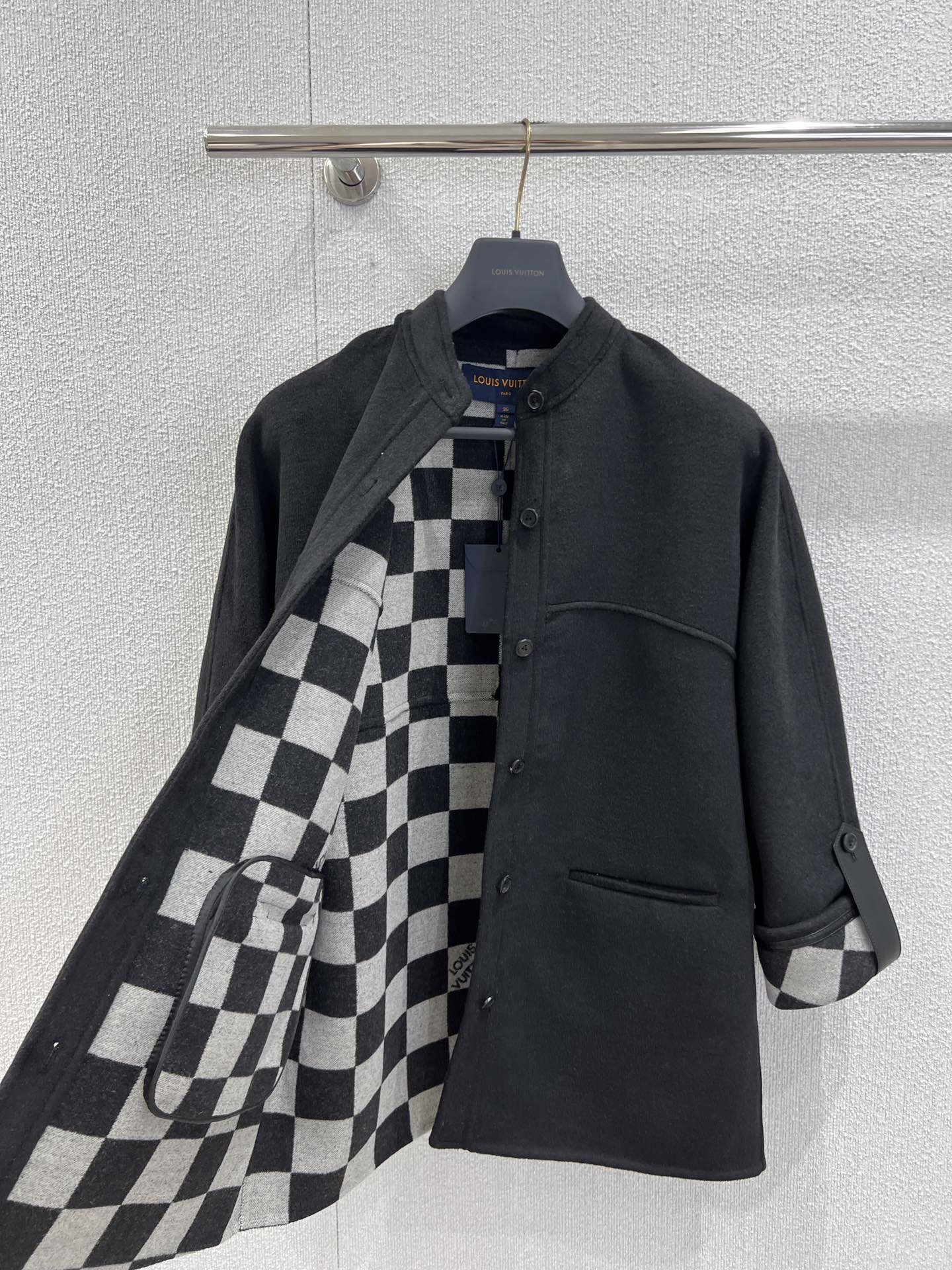 💰349 🆕Louis Vui*ton 25FW Autumn/Winter New Arrival: Elegant Checkerboard Cuffed Single-Breasted Mid-Length Coat | ⚠ Exclusive development based on original samples! High-quality version! The overall design features a minimalist black silhouette, which is sleek and sophisticated; the checkerboard cuffed design at the sleeves is the visual focus, with black, white and gray check patterns creating a retro charm. Paired with a leather strap, this simple coat instantly gains trendy recognition. The single-breasted layout is classic and elegant, and the mid-length style is extremely flattering for various body types. It can not only accommodate layered inner wear but also create a “relaxed and luxurious” style with its silhouette. In-stock now in sizes S/M/L