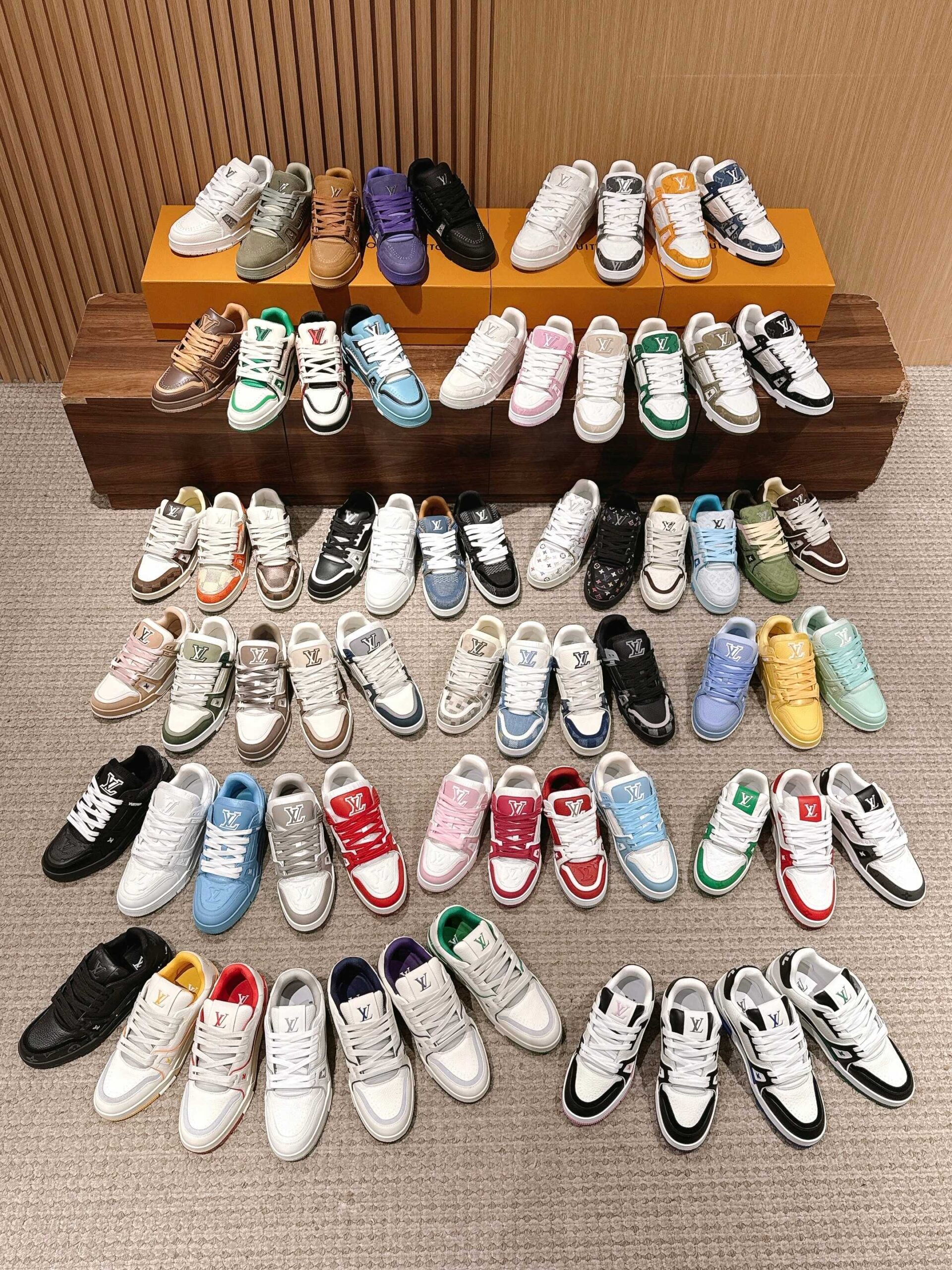 There are many classic color schemes for LV Trainer. Although this season’s designs are quite similar in shape, there are still many highlights in the details! Each pair takes 7 hours of sewing work. The tongue, sides and back are decorated with LV letters, and the sides are decorated with the Vuitton logo.