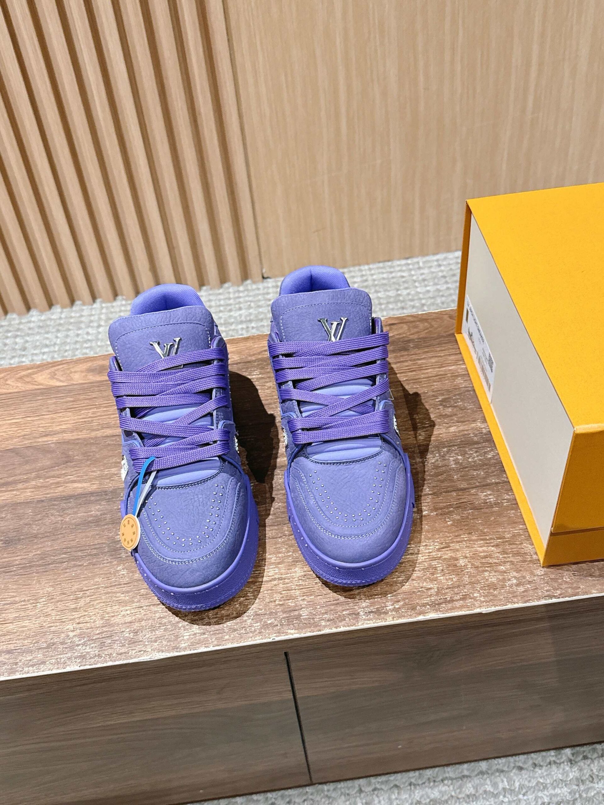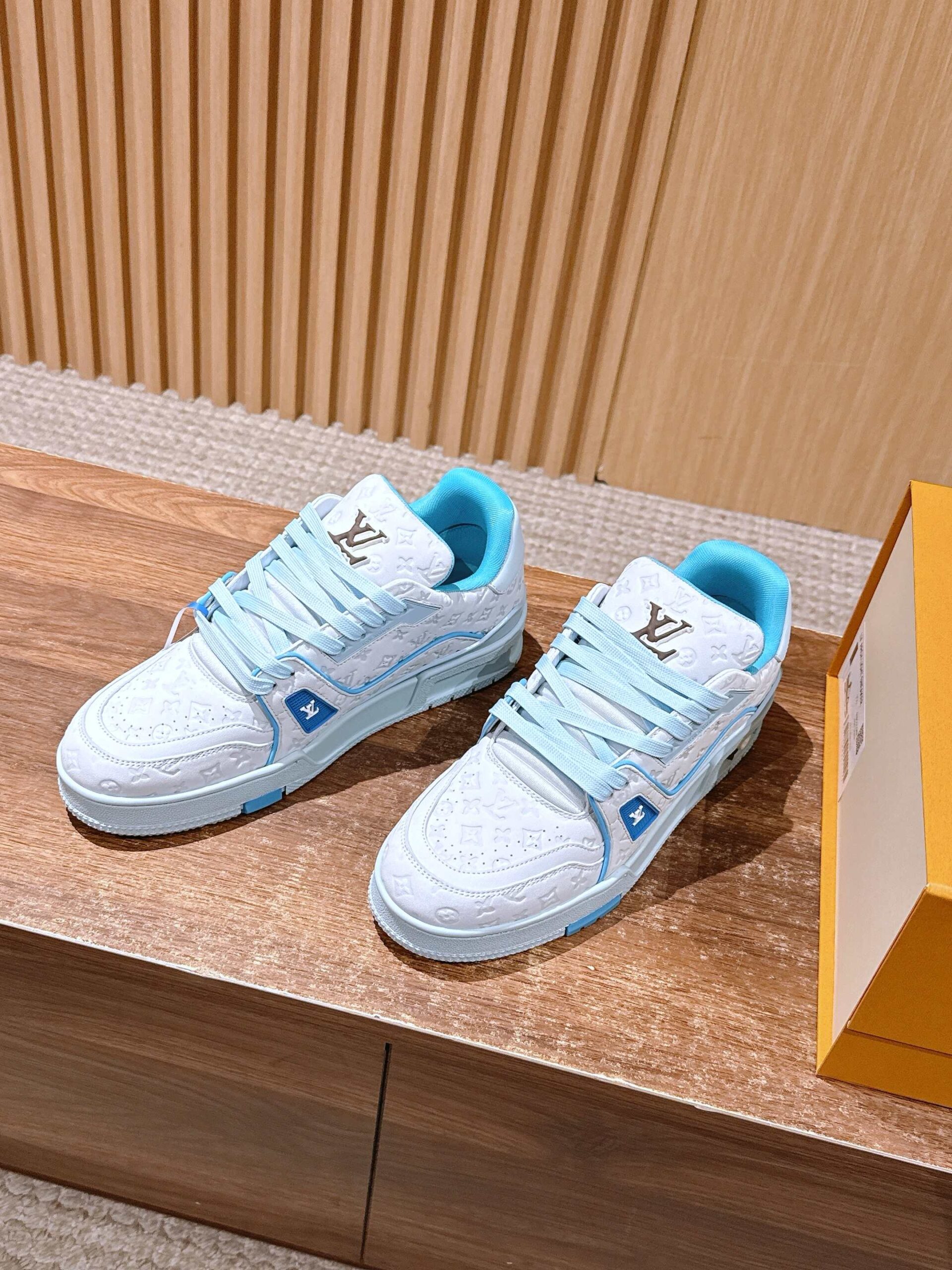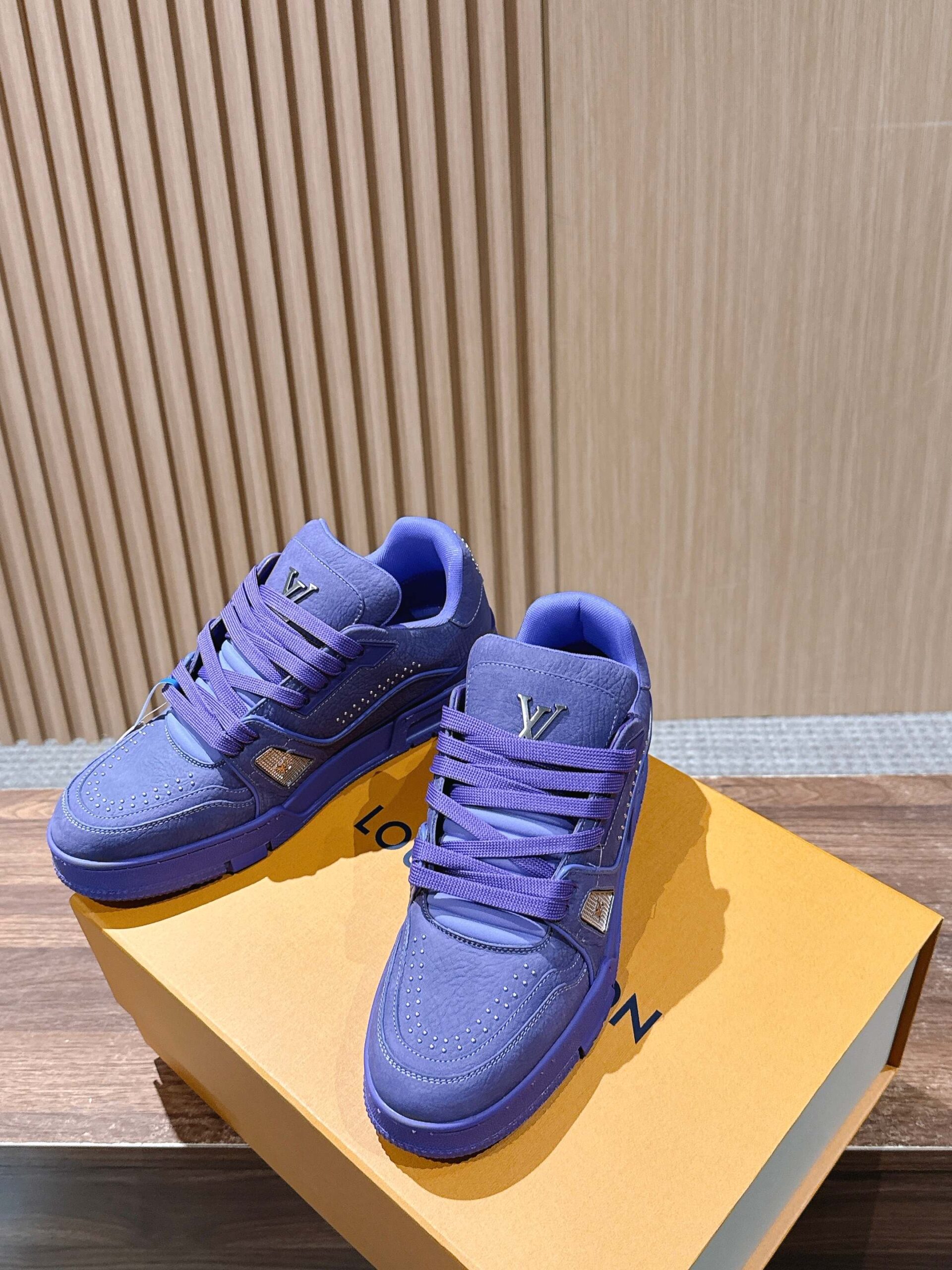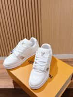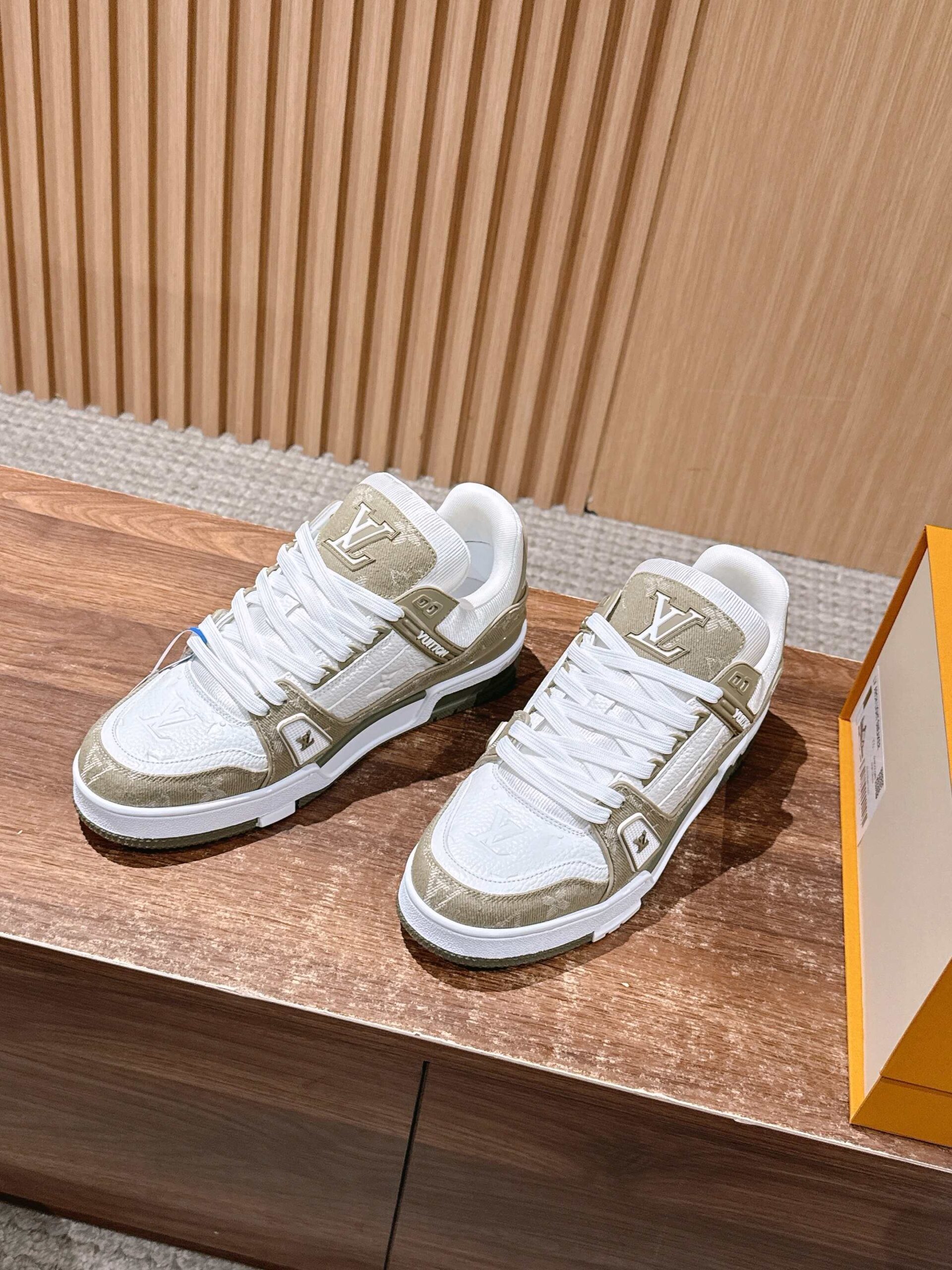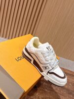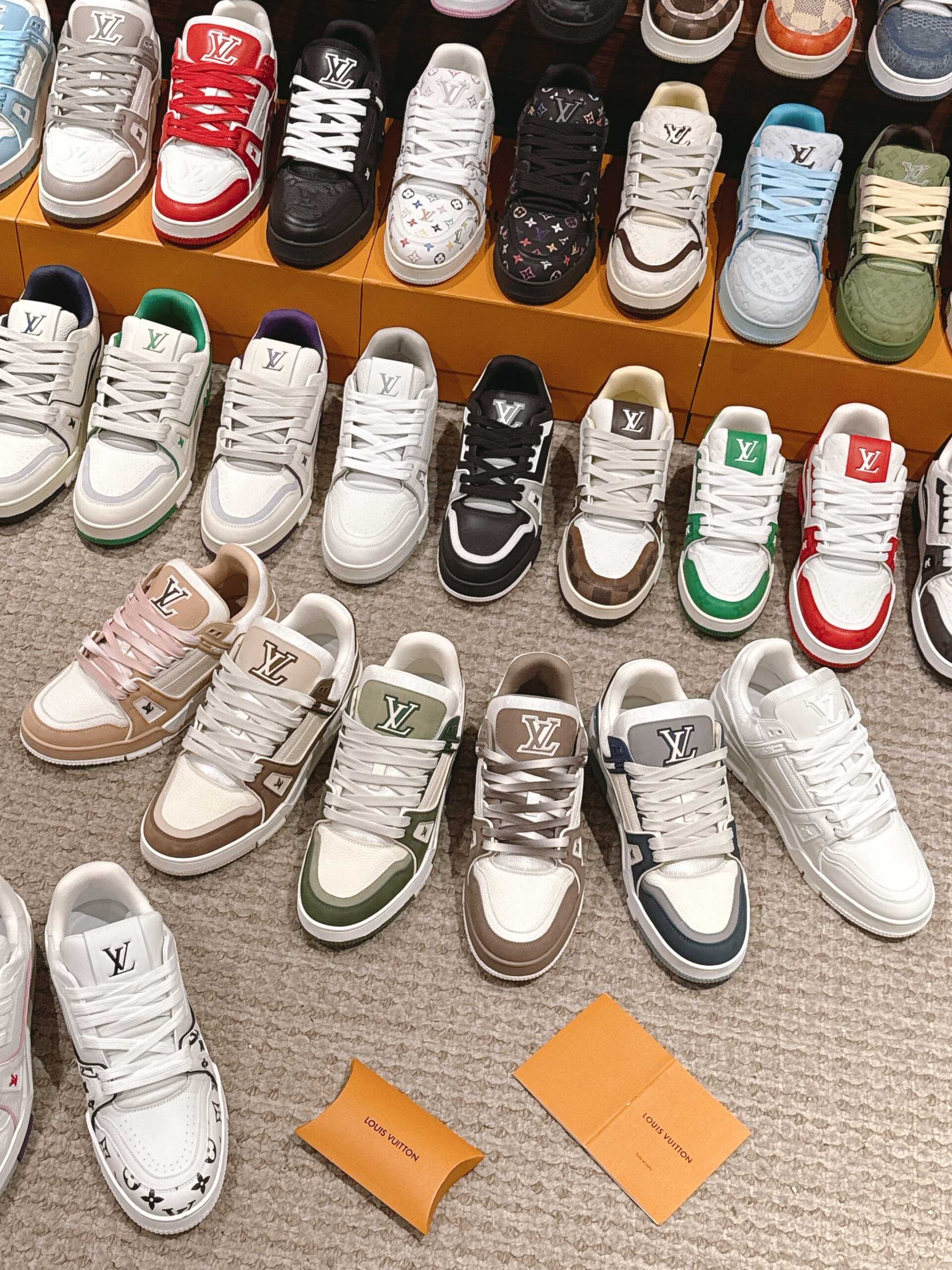 There are many classic color schemes for LV Trainer. Although this season’s designs are quite similar in shape, there are still many highlights in the details! Each pair takes 7 hours of sewing work. The tongue, sides and back are decorated with LV letters, and the sides are decorated with the Vuitton logo.