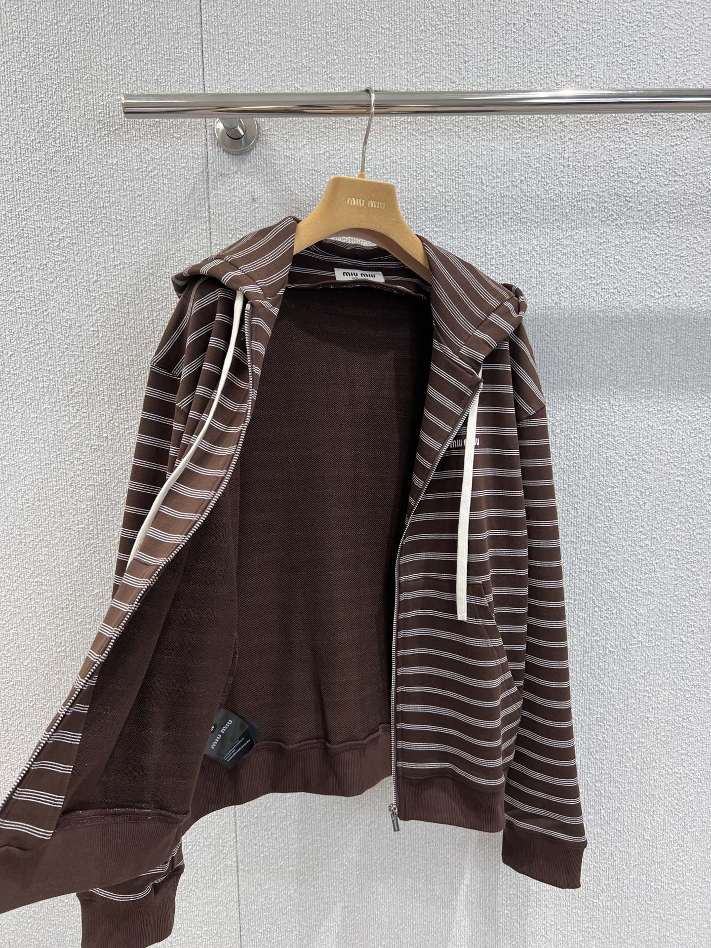 Be the first to review “Miumiu Coffee Striped Cotton Zip-Up Hoodie Jacket” Cancel reply