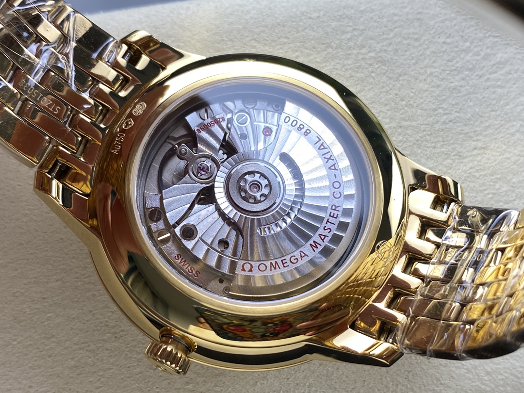 The leather strap buckle is a pin buckle consistent with the original one. Inside, it is equipped with the Omega 8800 Master Chronometer movement. Through the scratch-resistant sapphire crystal case back, the exquisite operation of the movement is clearly visible.