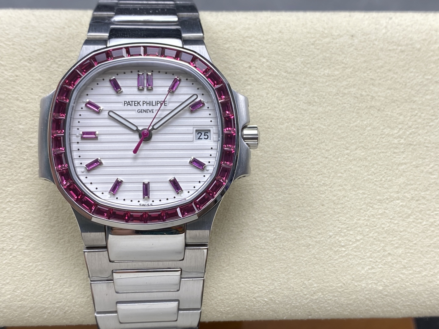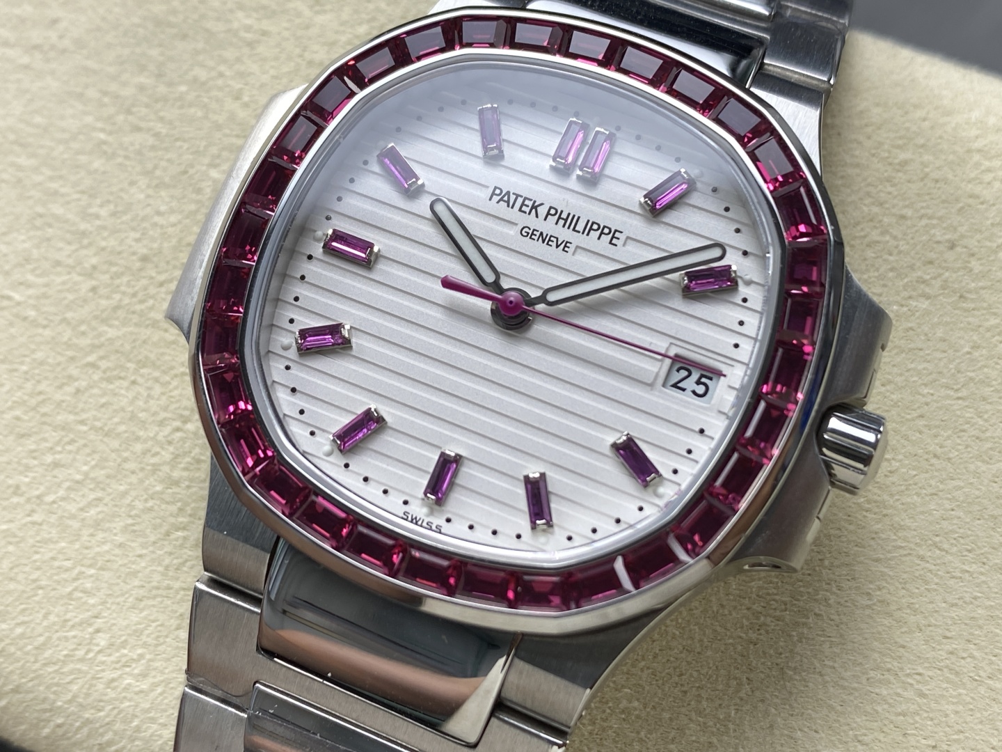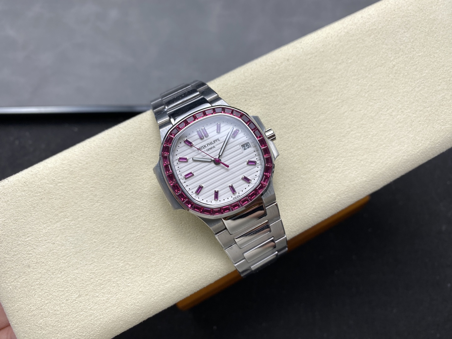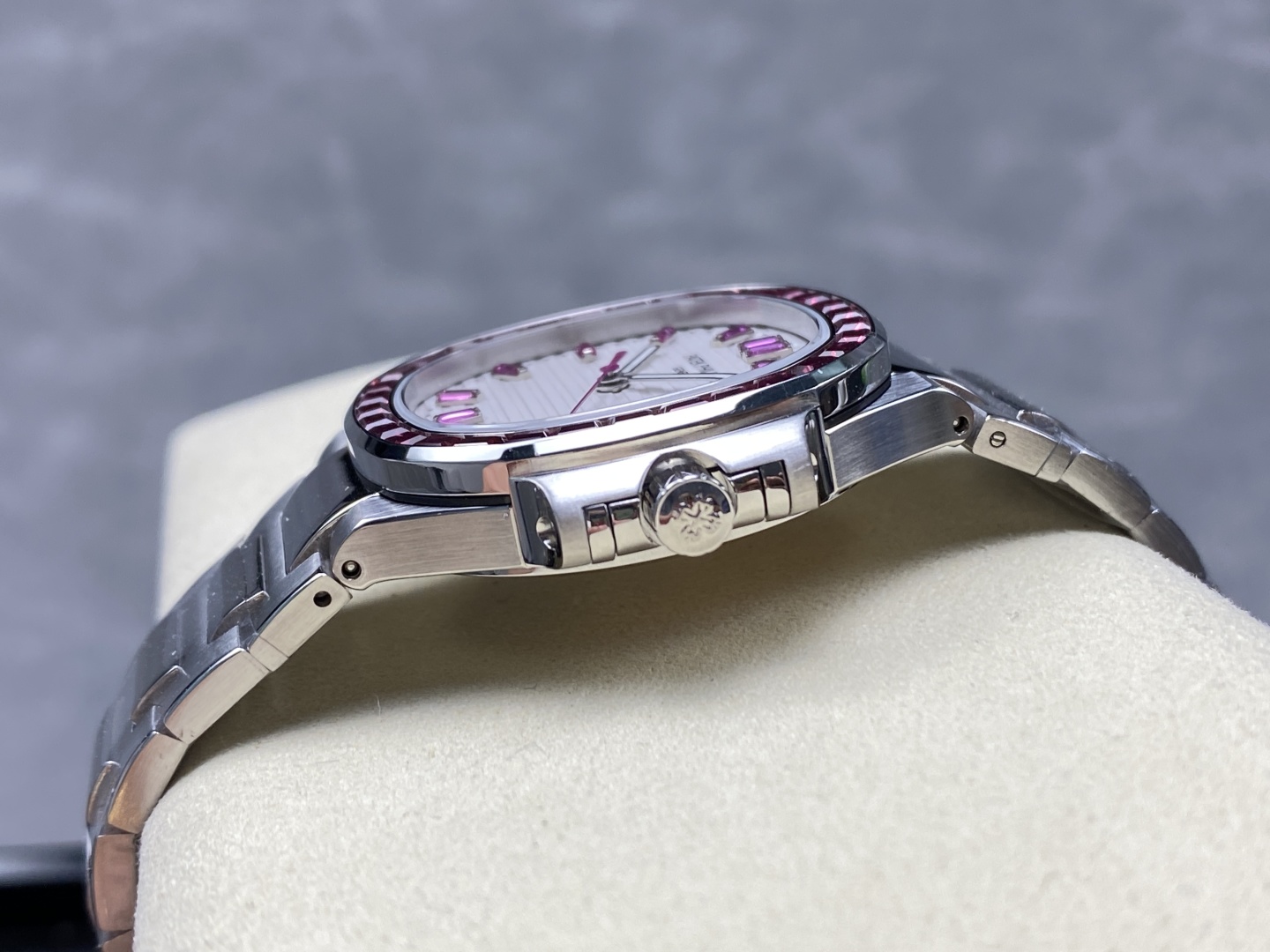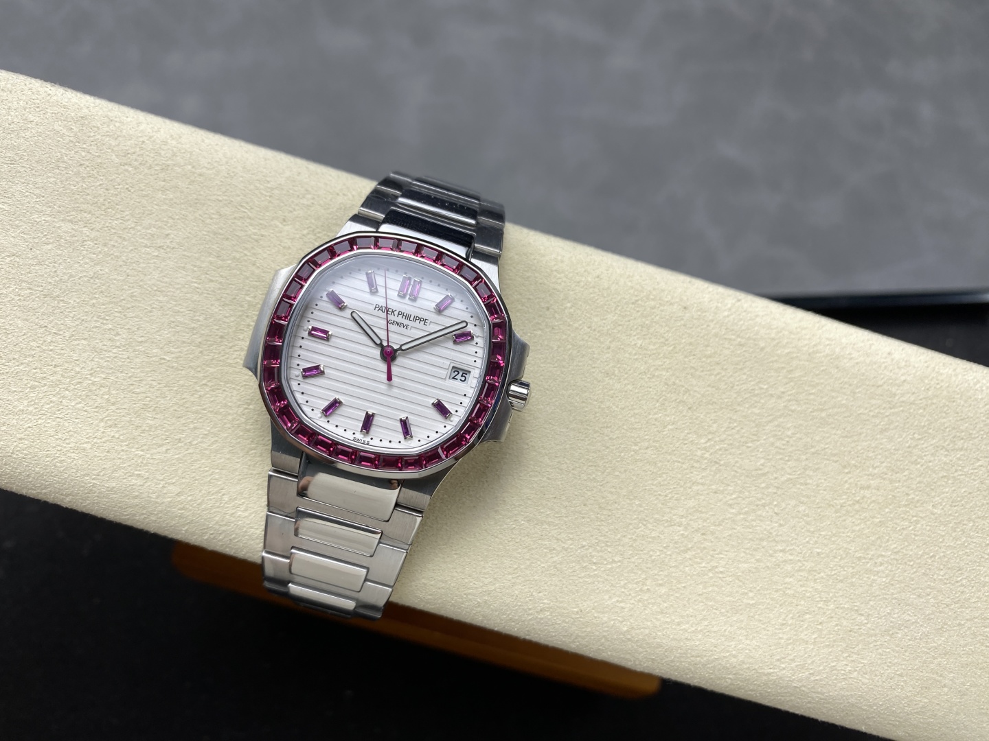 Case material: stainless steel (with baguette – cut diamonds set on the bezel);