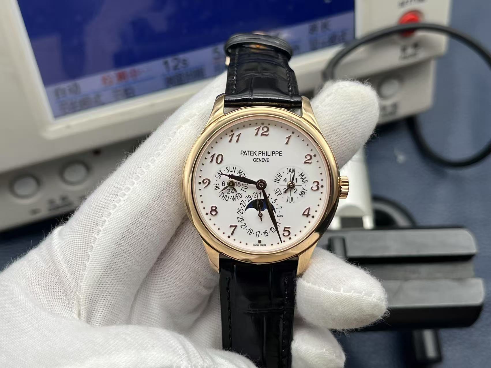 Case & Dial: The case has a diameter of 40mm, and the dial layout is generous and elegant. Despite its multiple functions, it does not feel cumbersome. The sunburst pattern, paired with gold three-dimensional Breguet numeral hour markers and hands (lancet hands), brings a striking sense of elegance that catches the eye.
