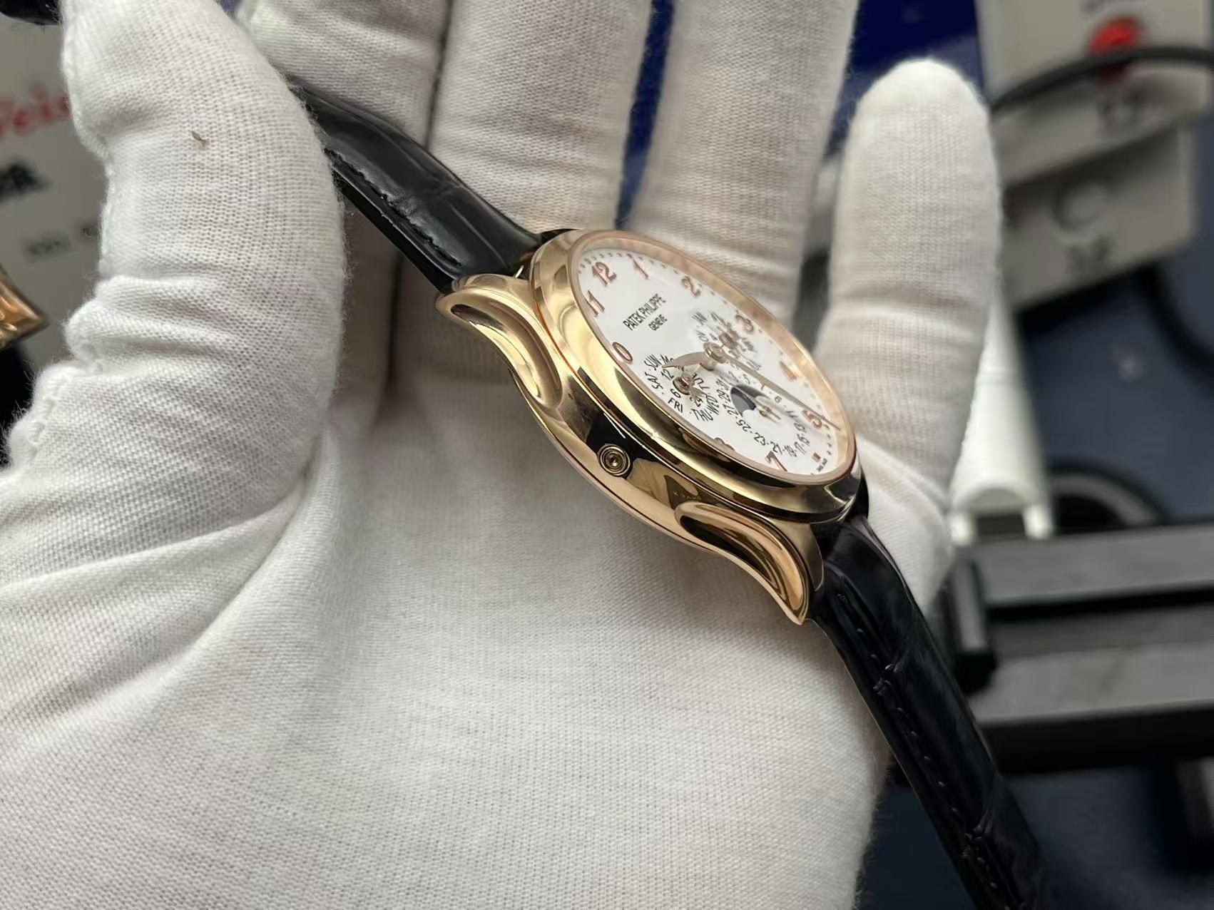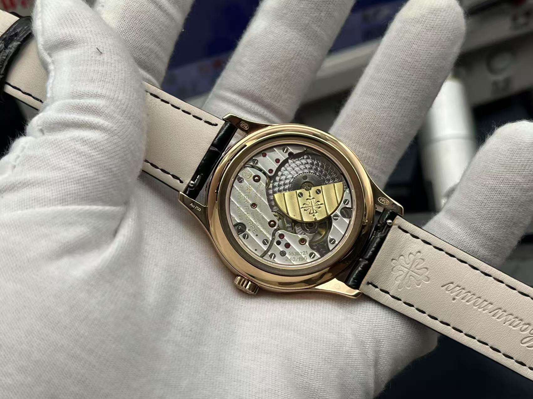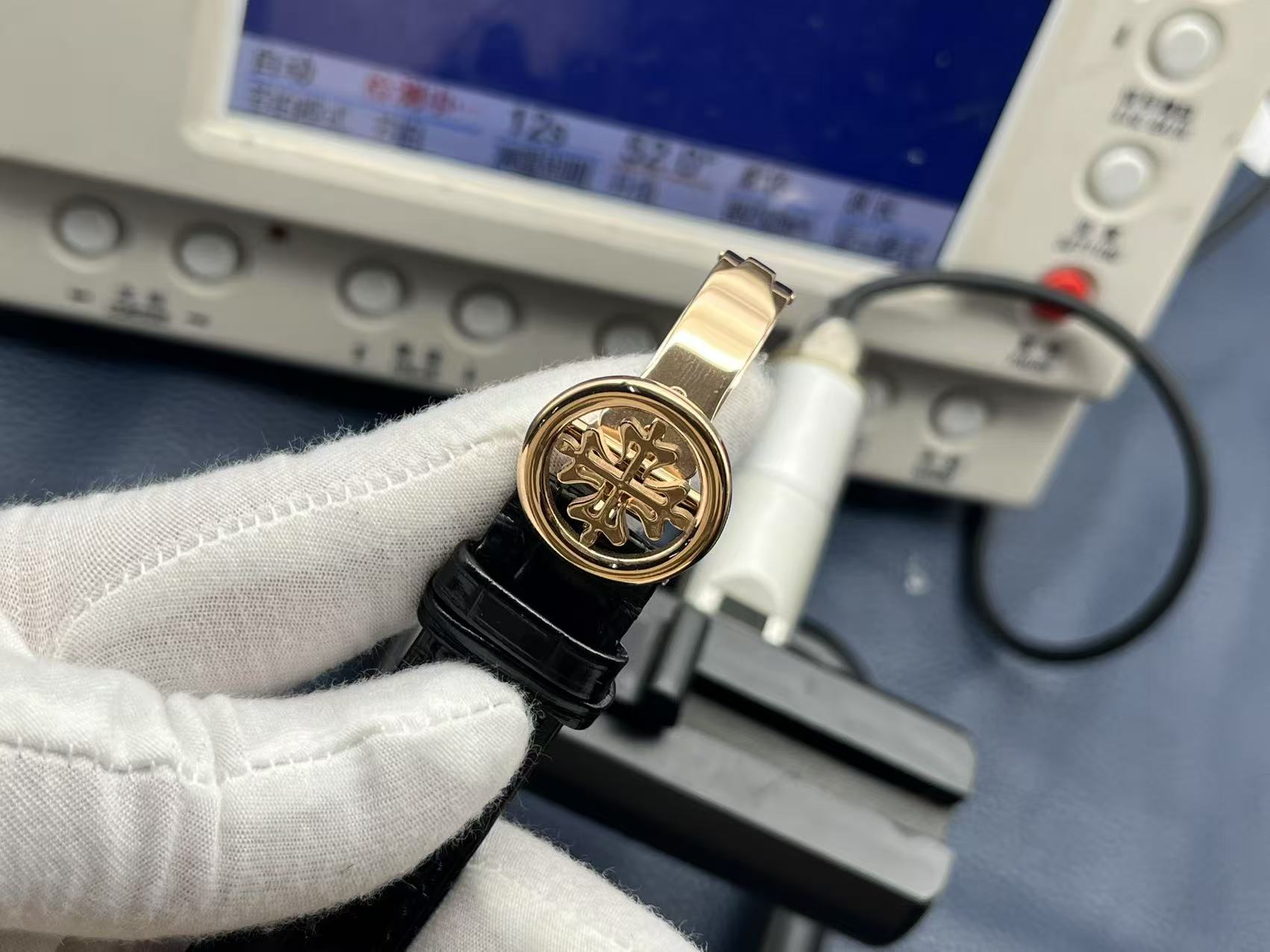 Overall Style & Matching: The dial layout is spacious and not cramped, exuding understated elegance. It is paired with an Italian calfskin strap and a Patek Philippe (PP)-branded hollowed-out “lantern” buckle, which fully enhances the retro and refined vibe.