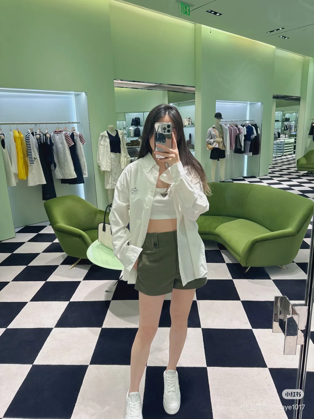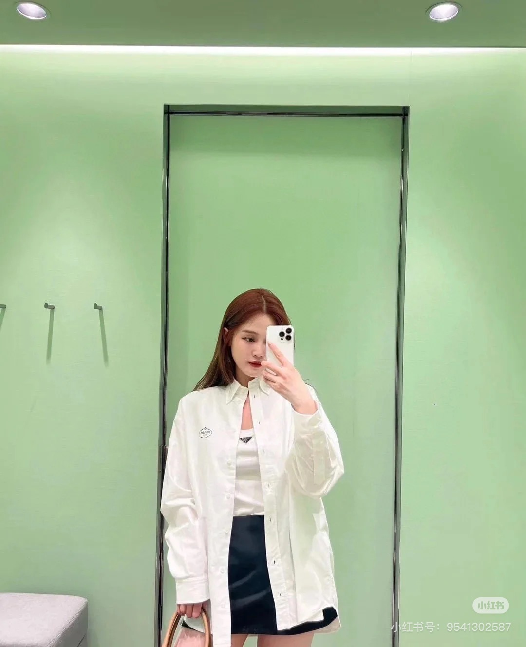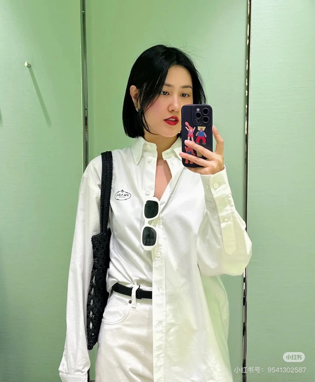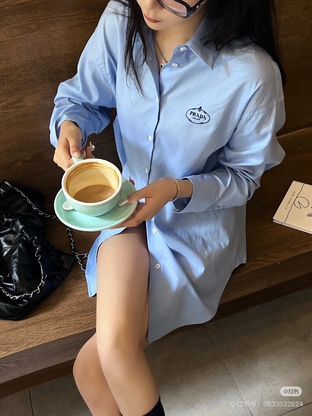 $99????Prada, classic embroidered lapel button long-sleeve shirt. Purchased authentically for 6589. Twill poplin 100% cotton non-stretchy 185g shirt fabric, 75D interlining, hand overlock stitching, imported embroidery, fabric enzyme washing, custom 1:1 buttons, custom 1:1 labels, loose fit.