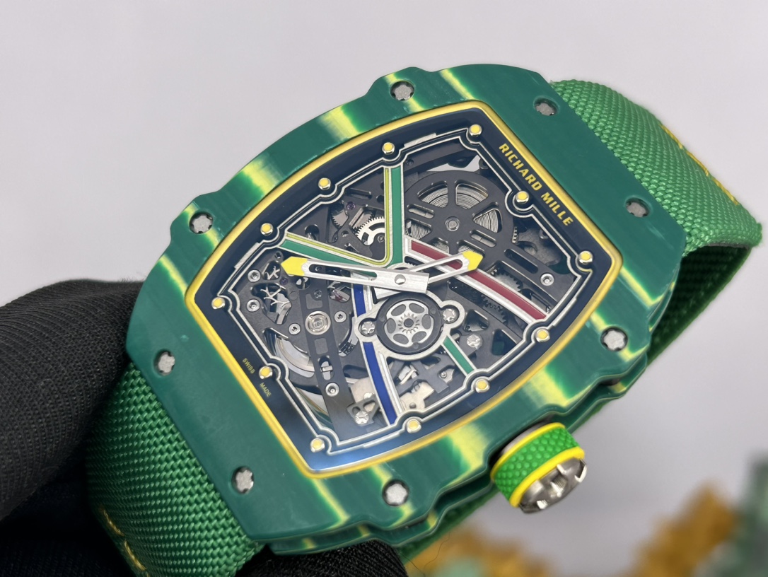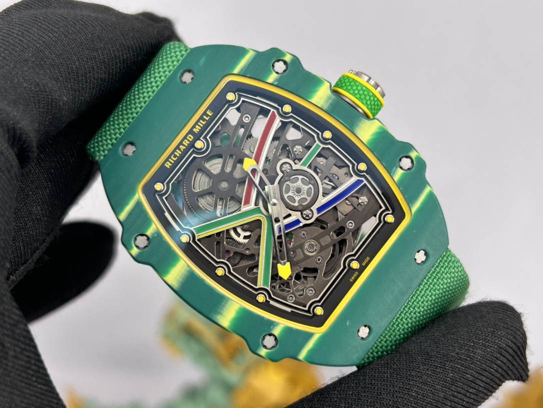 The highly anticipated top-tier replica masterpiece among watch enthusiasts worldwide — the Richard Mille RM67-02 V3 Ultimate Edition is proudly launched! We have dedicated ourselves to studying the precise data of the original timepiece, and breakthroughly achieved a case with the golden ratio of 38×47×7.8mm, accurately reproducing the lightweight texture of 33 grams. The millimeter-level error control has created the only myth of matching the original version across the entire network.