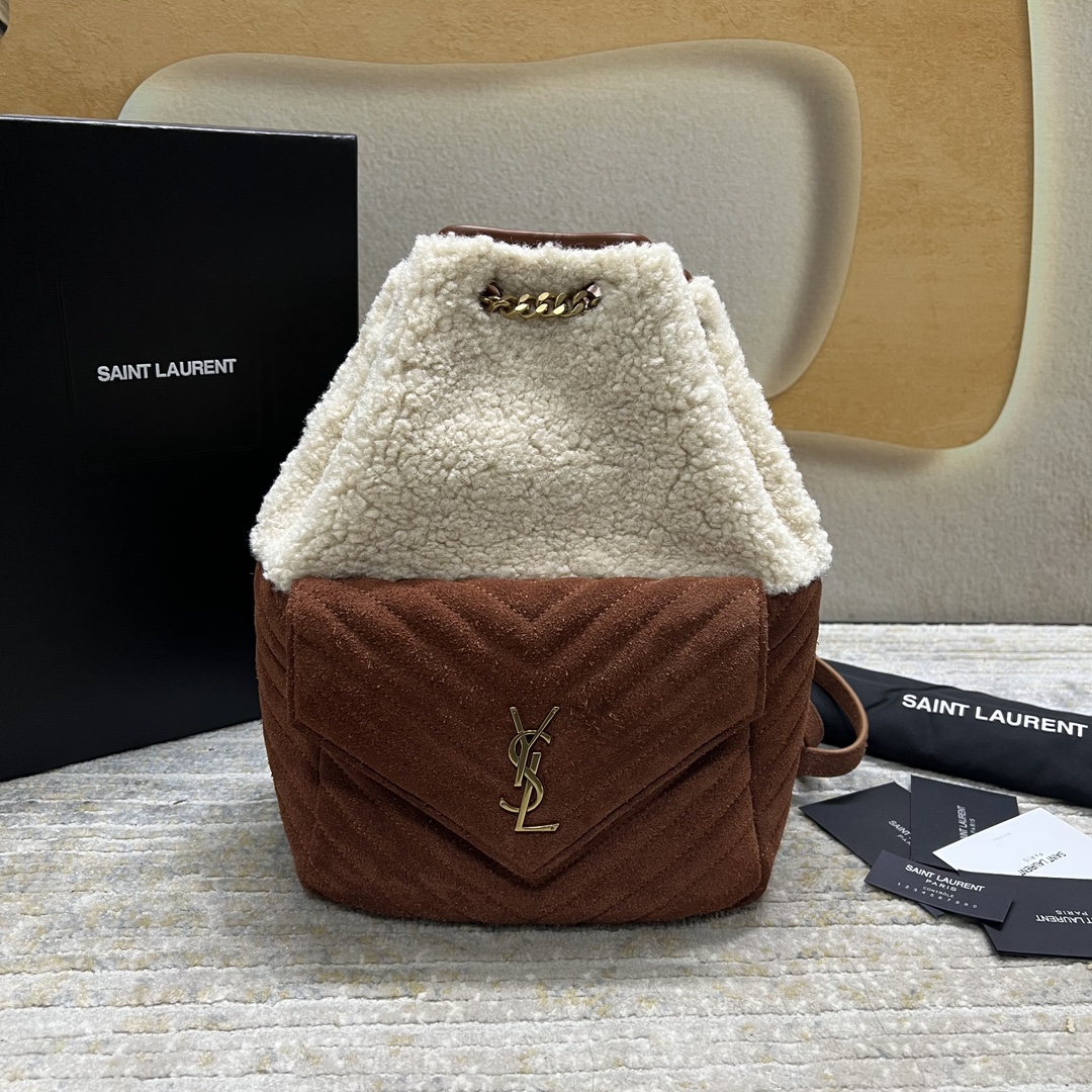 YSL JOE V-patterned suede and wool backpack